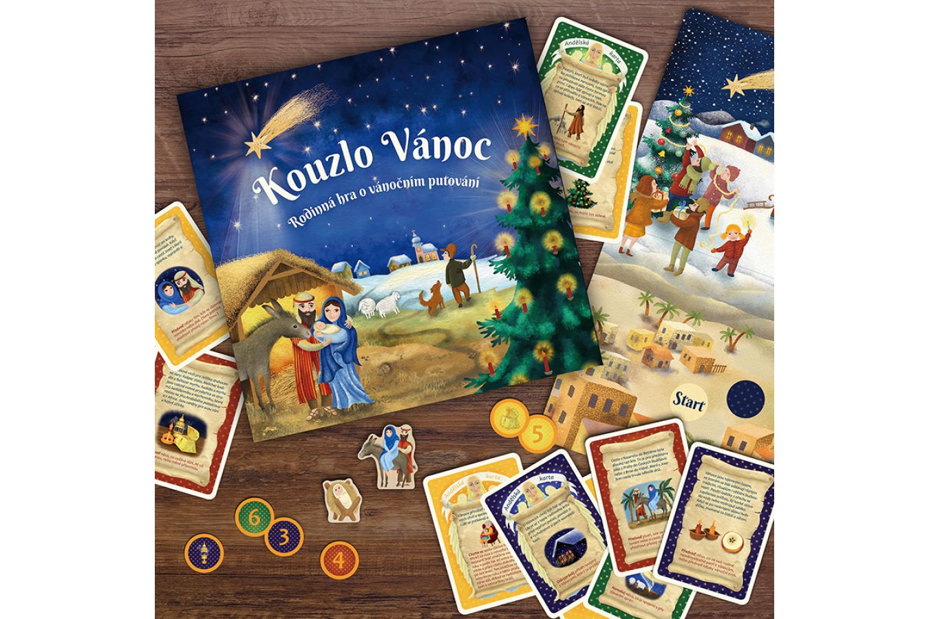 Zpříjemněte si dobu adventní společenskou hrou Kouzlo Vánoc, díky které si s rodinou užijete plno zábavy a té pravé vánoční atmosféry. Pomozte společně Marii a Josefovi dostat se do Betléma. Cestou budete plnit různé úkoly a dozvíte se zajímavé věci o Vánocích. Kdo dokáže předvést vánoční koledu? Kdo připraví ten nejlepší vánoční nápoj? Víte proč k Vánocům patří vánoční stromeček? A co všechno víte o vánoční hvězdě?