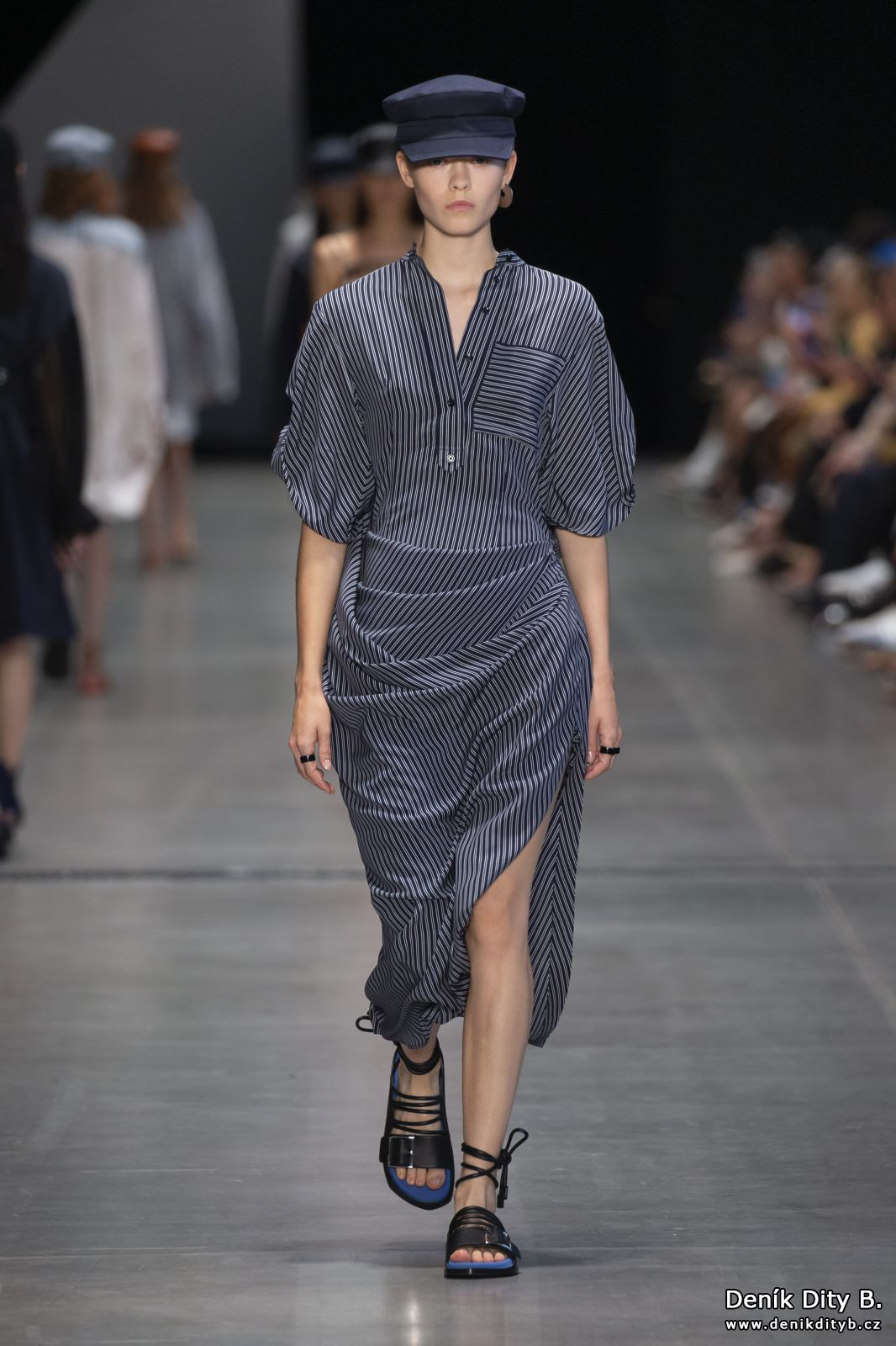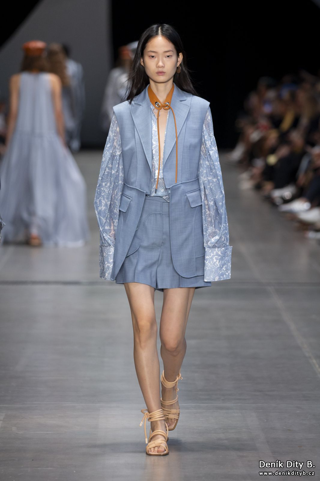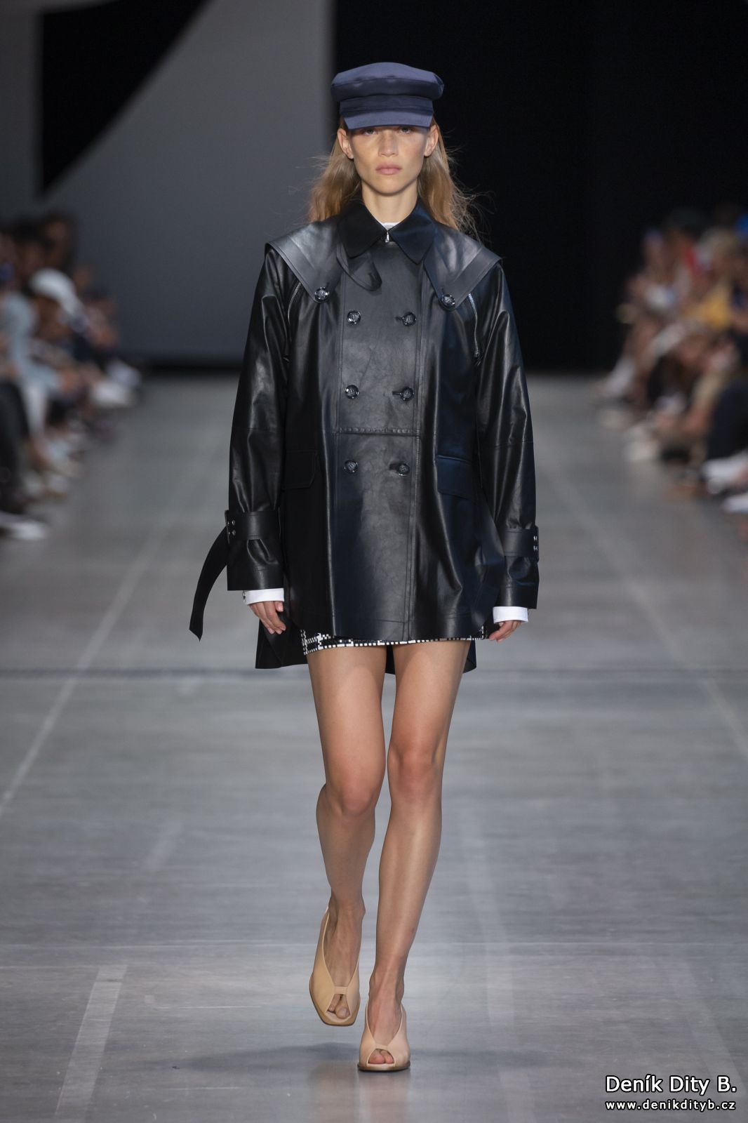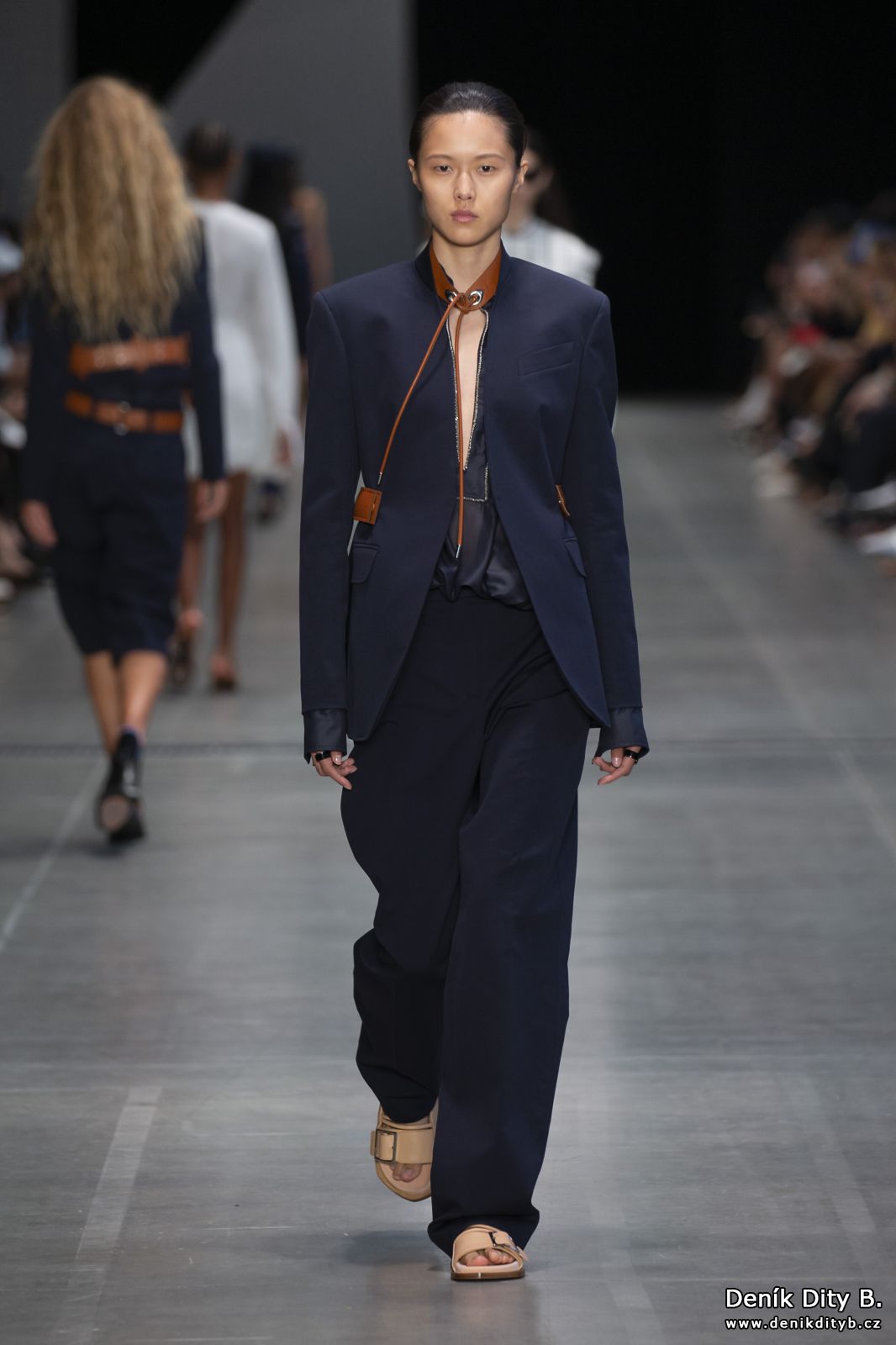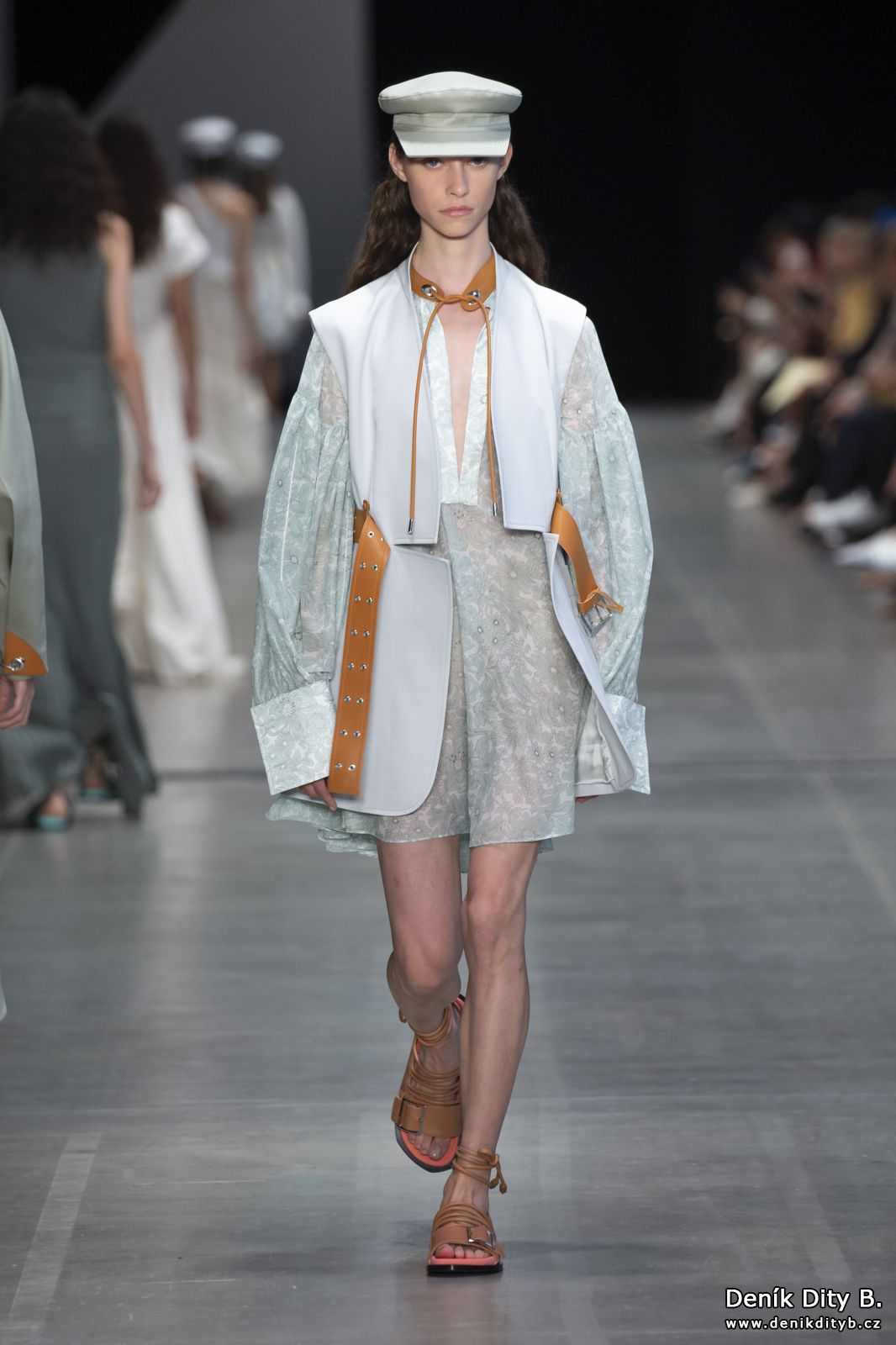 Celkový look dotvářejí kotníkové sandály s kulatými koženými pásky a ultra funkční futuristické tenisky. Nechybí sportovní kožené čepice, kabelky se střihem pytlů a brýle, které charakterizují inovativní tvary a kombinace materiálů.