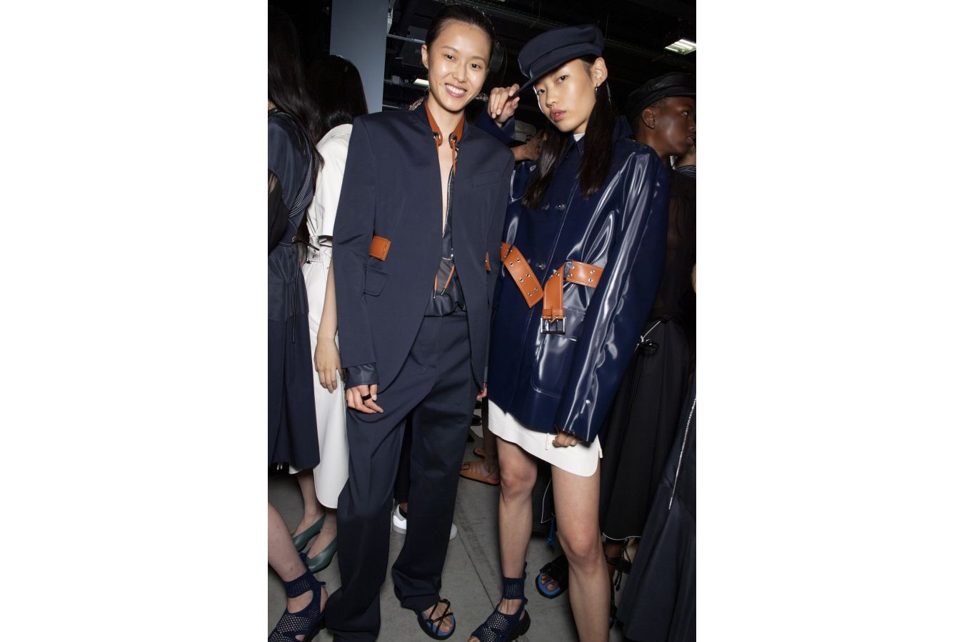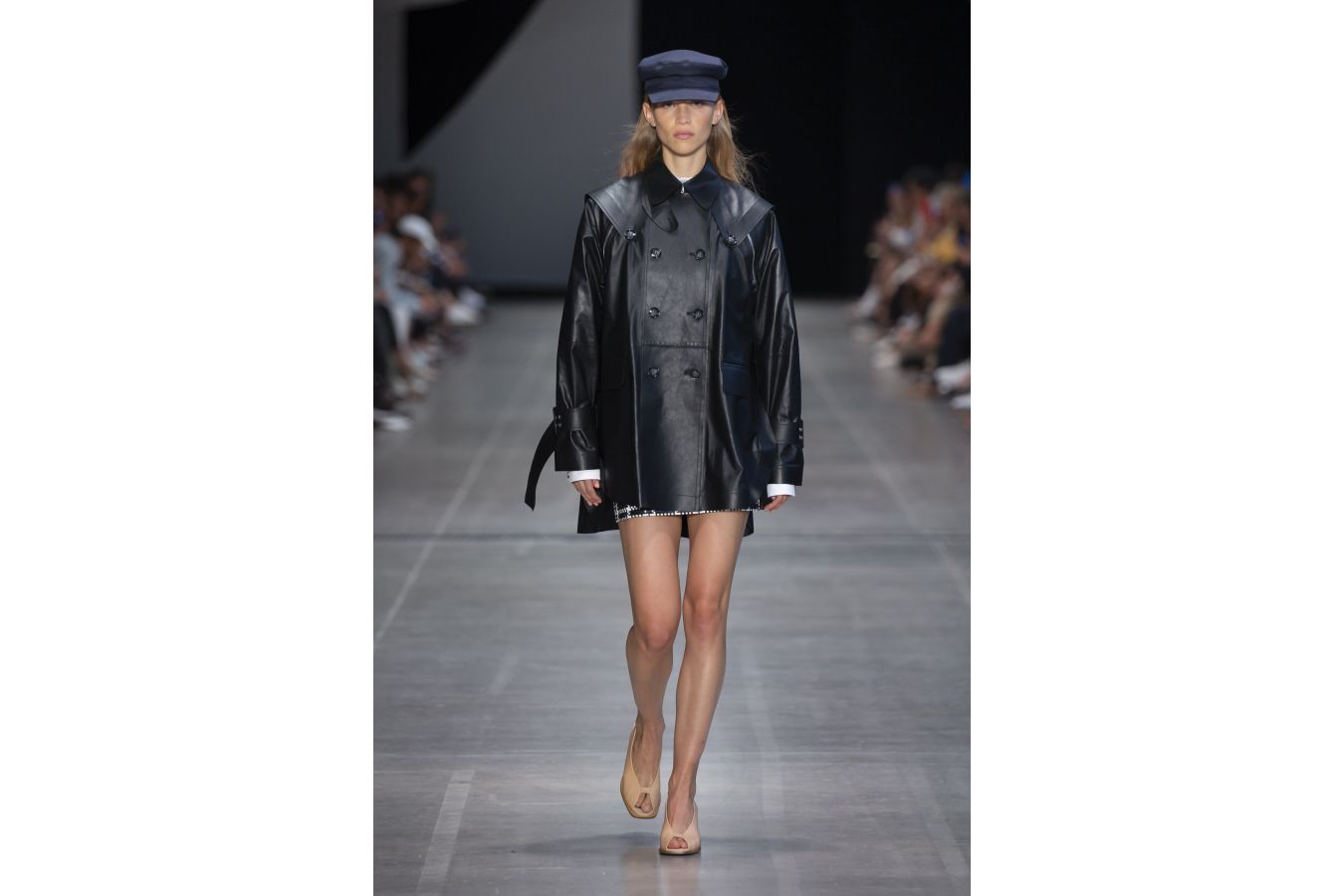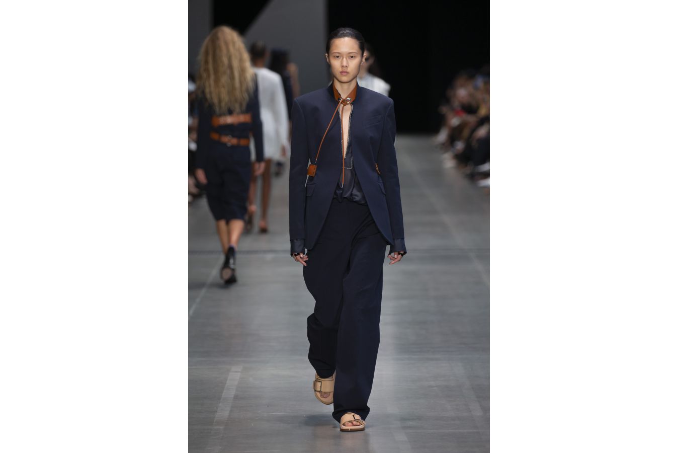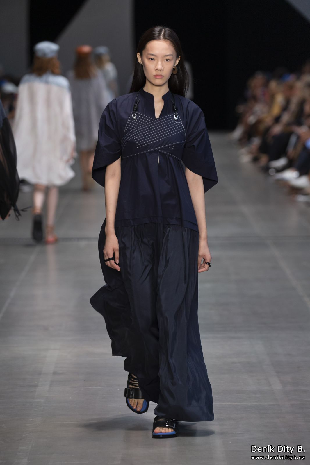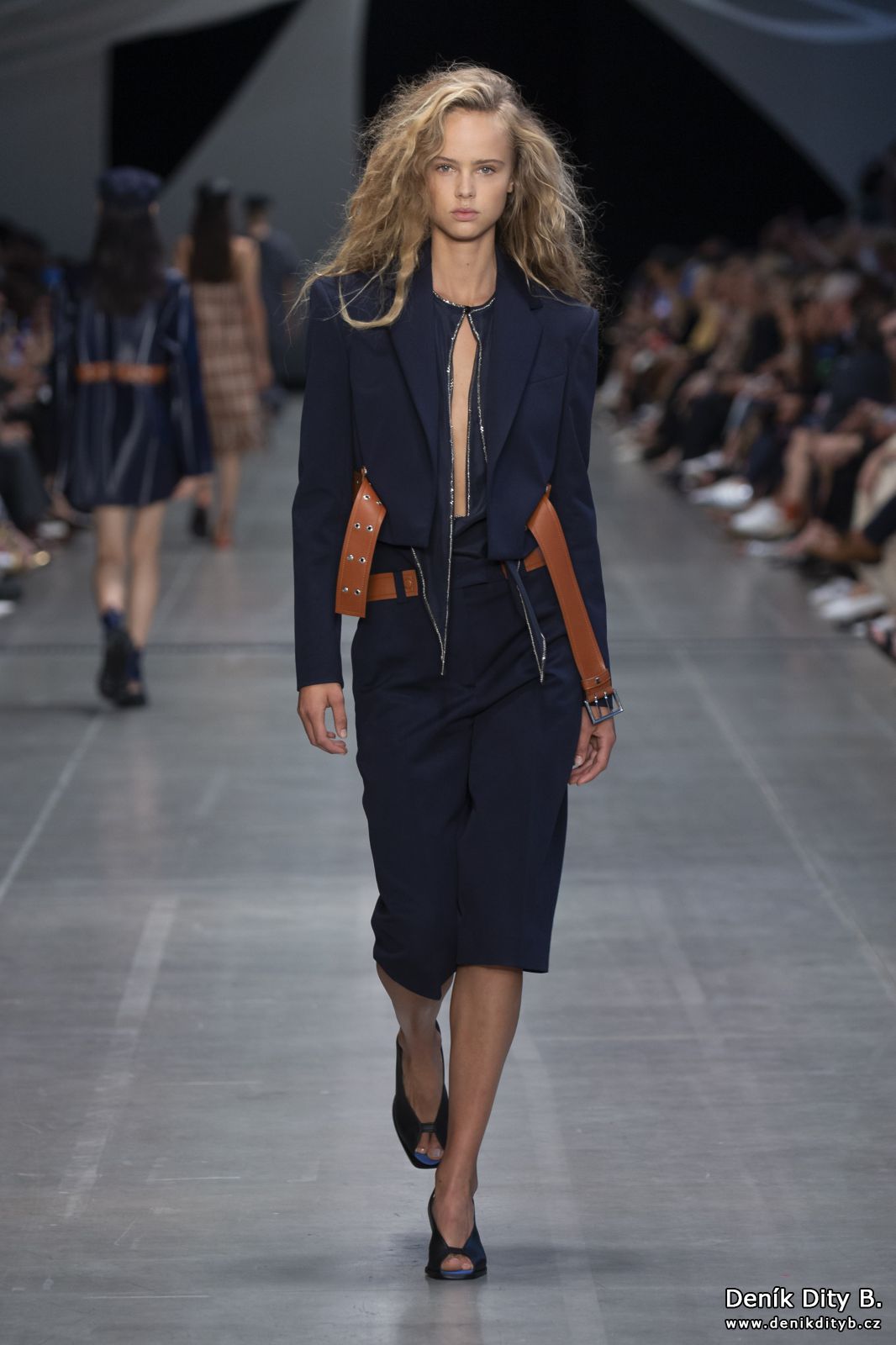 Celkový look dotvářejí kotníkové sandály s kulatými koženými pásky a ultra funkční futuristické tenisky. Nechybí sportovní kožené čepice, kabelky se střihem pytlů a brýle, které charakterizují inovativní tvary a kombinace materiálů.
