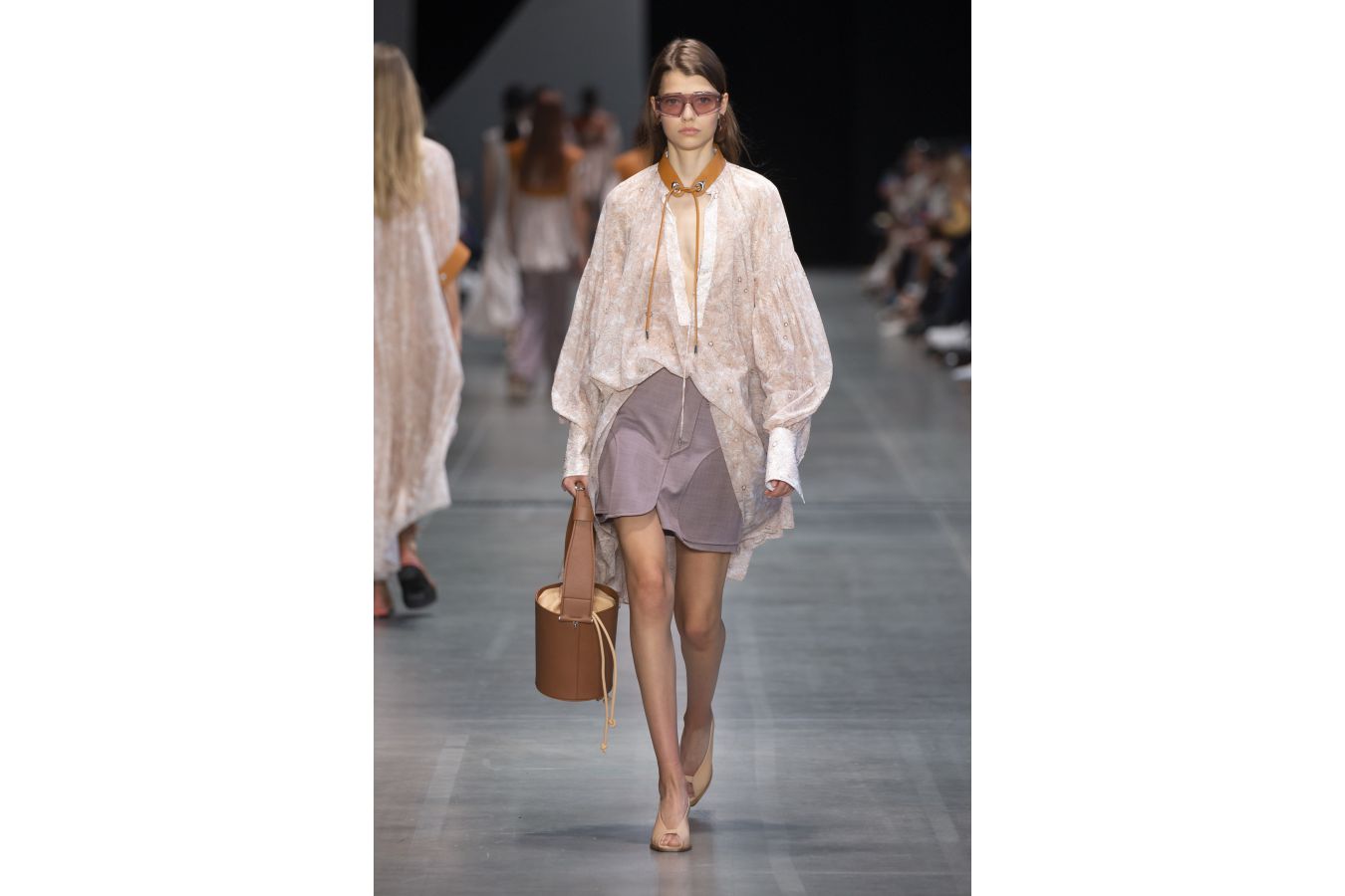 Kolekce si pohrává s kontrasty mezi precizním krejčovským uměním a decentní rozevlátostí halenek a šatů s potisky v jemných barvách, které vypadají jako vybledlé sluncem. Rozevláté šaty s jasně danými střihy se vyznačují důrazem na objem a průhledné prvky. Detail řasení je použit tak, aby zdůrazňoval dokonalou ženskost. Pláště a košilové šaty se kombinují s pletenými pončy nebo topy. Oblek na míru je nabízen v ženských barvách z měkkých materiálů, zatímco kalhoty a sukně jsou doplněny nadrozměrnými košilemi a blůzami s květinovými potisky, řetízky a koženými řemínky. Květinové potisky v tlumených barvách jsou ozvláštněny lesklými detaily.