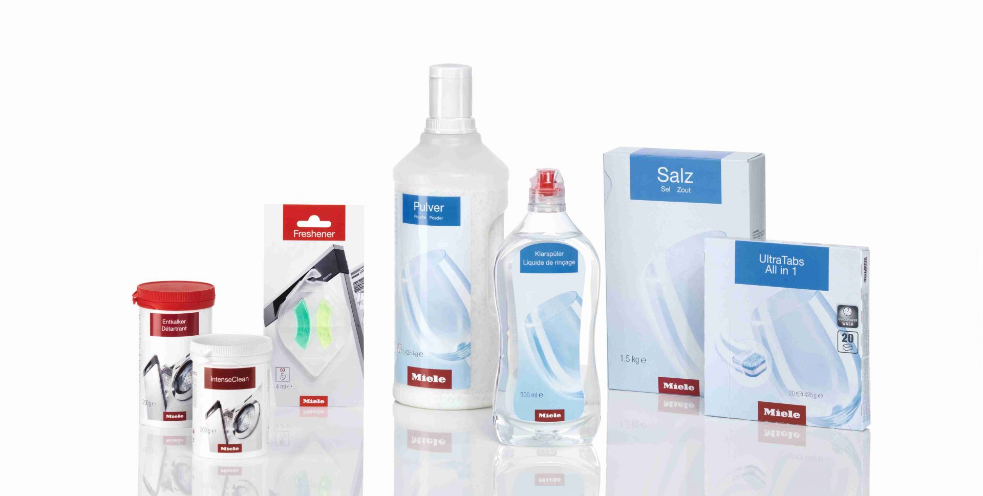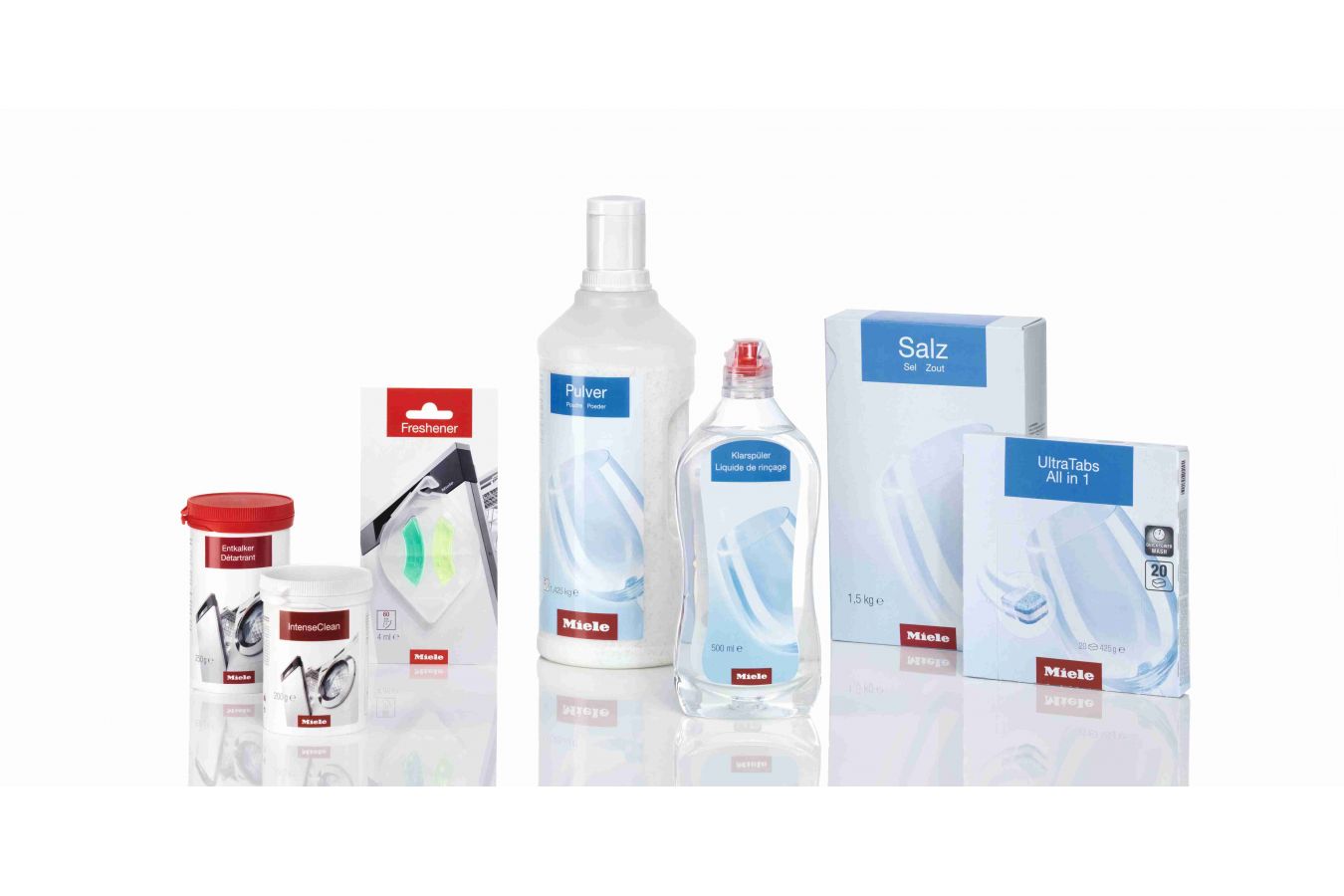 Perfektně čisté nádobí s oslňujícím leskem je výsledkem dokonalé souhry kvalitní myčky a mycích prostředků. To si velmi dobře uvědomuje společnost Miele, která svým zákazníkům nabízí k myčkám Miele také kompletní set vlastních mycích prostředků pro dokonale čisté a zářivě lesklé nádobí bez kompromisů. Najdete v něm 3 x 20 tablet UltraTabs, 1,5 kg soli a 500 ml leštidla a nyní za zvýhodněnou cenu (do vyprodání zásob) koupíte na e-shopu Miele.
