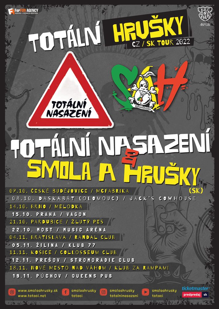 Slánský punk-rockový kvartet TOTÁLNÍ NASAZENÍ si musel, stejně jako u předchozího úspěšného Punk Rock Rádio Tour, i tentokrát kvůli covidu počkat dva roky na realizaci plánované česko-slovenské koncertní šňůry. Myšlenka spojit síly s žánrově odlišnou slovenskou ska, reggae hudební skupinou SMOLA A HRUŠKY vznikla totiž již v roce 2019.