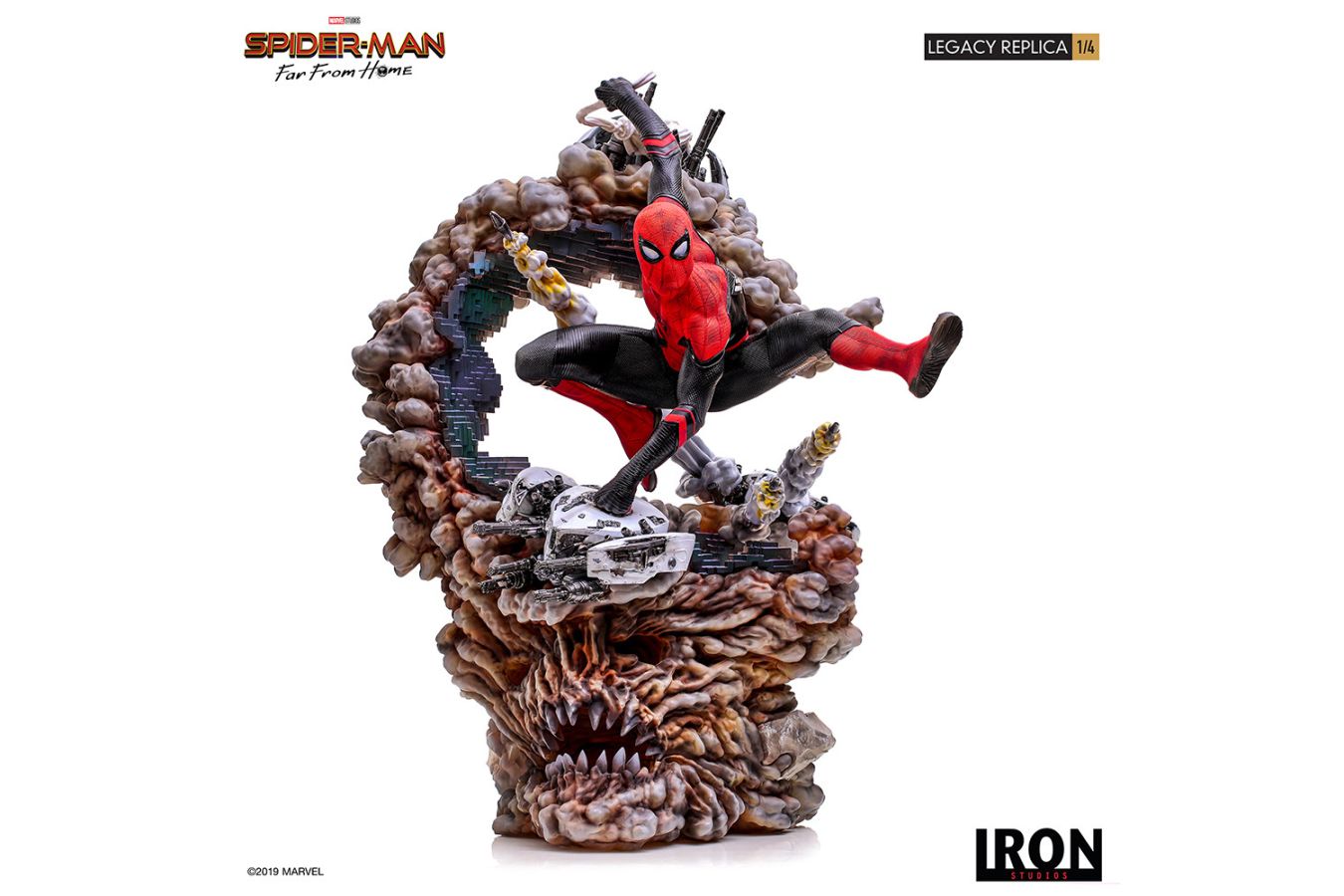 Tato unikátní soška z limitované sběratelské edice od legendárních Iron Studios je inspirována filmem Spider-Man: Daleko od domova, který byl završením fáze 3 MCU. Představuje dynamický souboj Spider-Mana s taktickými drony, které ovládal Quentin Beck. Drony spolu s 3D projekcí vytvářely zdání skutečných monster – takzvaných Elementálů, dalších Beckových iluzí. Tato úžasná figurka ve velkém měřítku 1:4 je vysoká cca 60 cm a váží 16 kg. Je ručně malovaná, vyroená z umělého kamene a je doplněná o LED světelný efekt. Patří do limitované sběratelské edice a zakoupit ji můžete například na e-shopu Jabadaba.cz