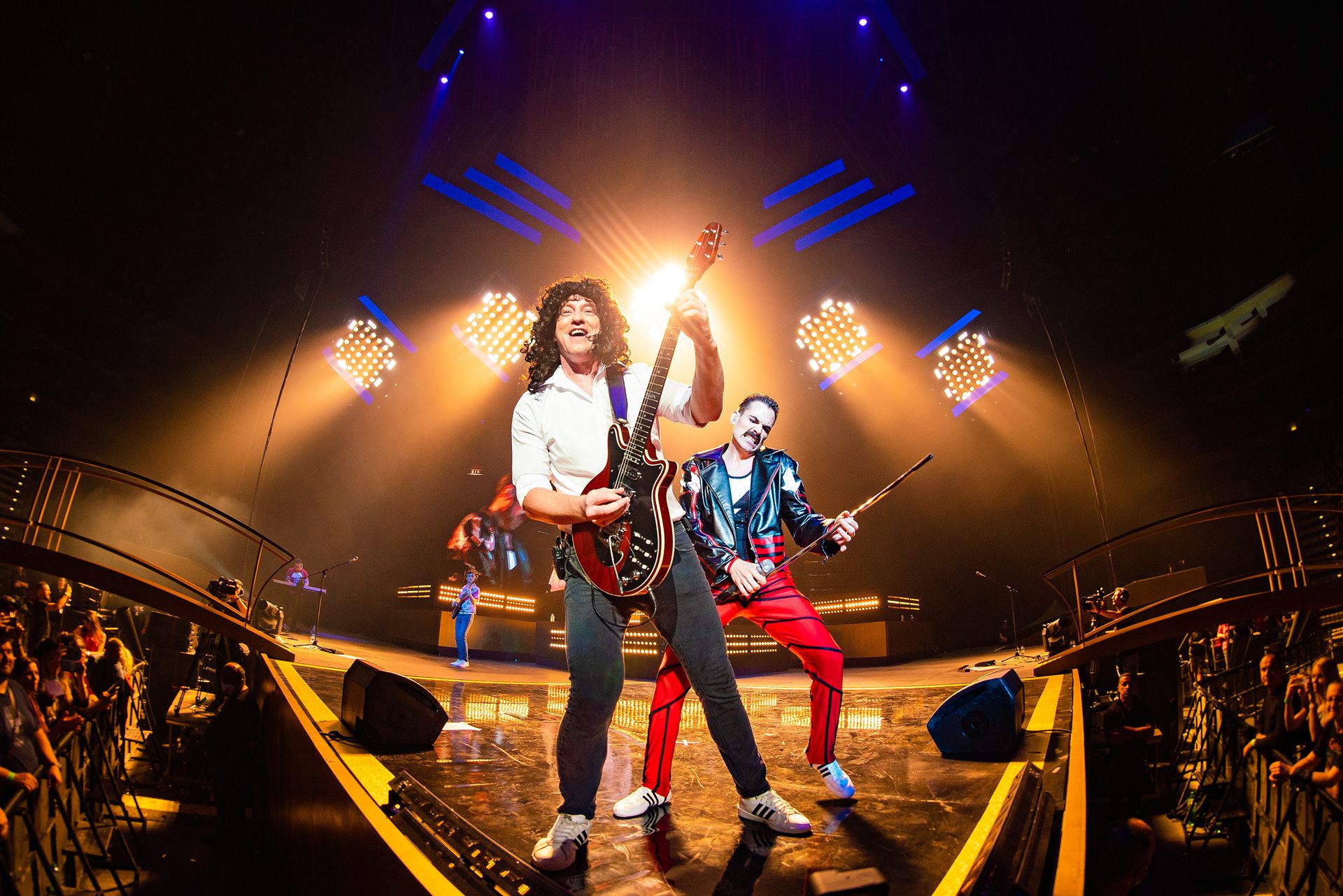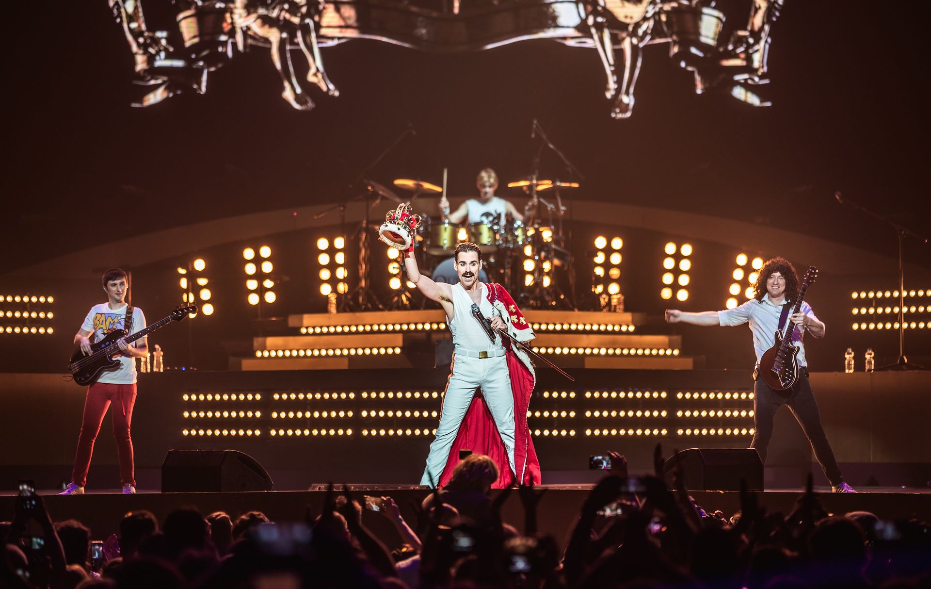 Klucha na pódiu doplňují bubeník Petr Baláš, baskytarista Martin Binhack, klávesista Michal David (shoda jmen s hvězdou diskoték je čistě náhodná) a kytarista Rudy Neumann. Sestava odkazuje na klasické koncertní složení Queen, kdy čtveřici Freddie Mercury, John Deacon, Brian May a Roger Taylor doplňoval ještě Spike Edney u kláves.