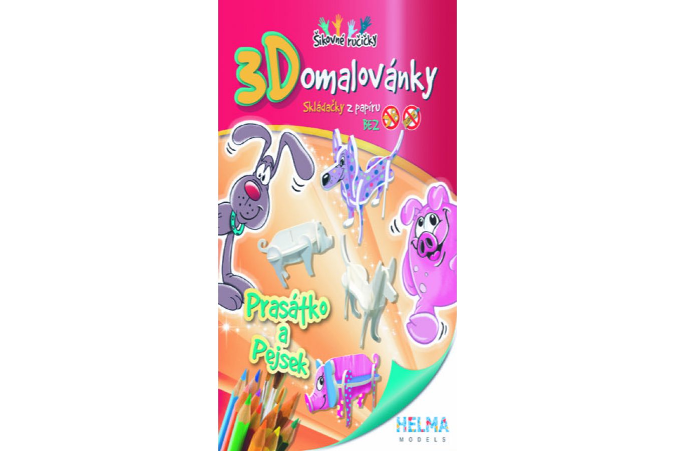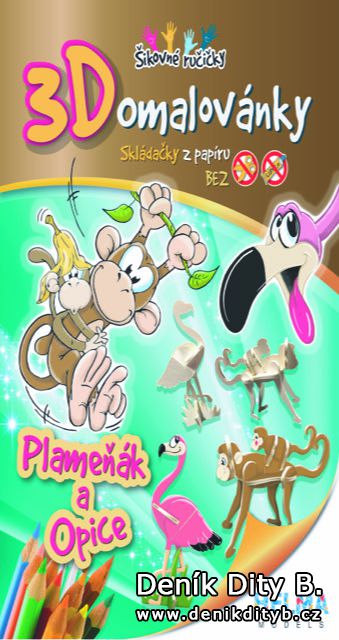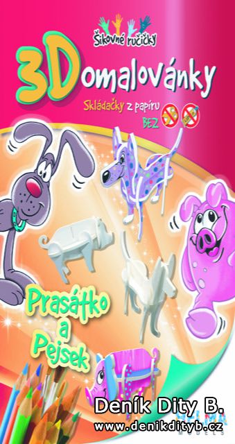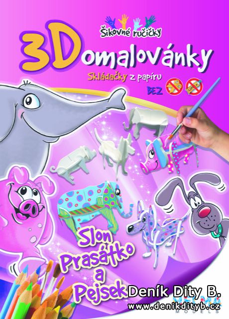3D omalovánky jsou skládačka z papírového kartonu, kterou si mohu děti vymalovat podle vlastních představ. Podporují a rozvíjí dětskou představivost, fantazii, zručnost a prostorové vnímání. V nabídce jsou zvířátka jako slon, opice, prasátko, pes, kočka, netopýr nebo i pavouk. Na samotné skládání nebudete potřebovat nůžky ani lepidlo, což je velmi praktické. Stačí si připravit pastelky, fixy či vodovky a hra může začít. Fantizii se meze nekladou, nikde není psáno, že slon nemůže být třeba růžový nebo prasátko puntíkované.