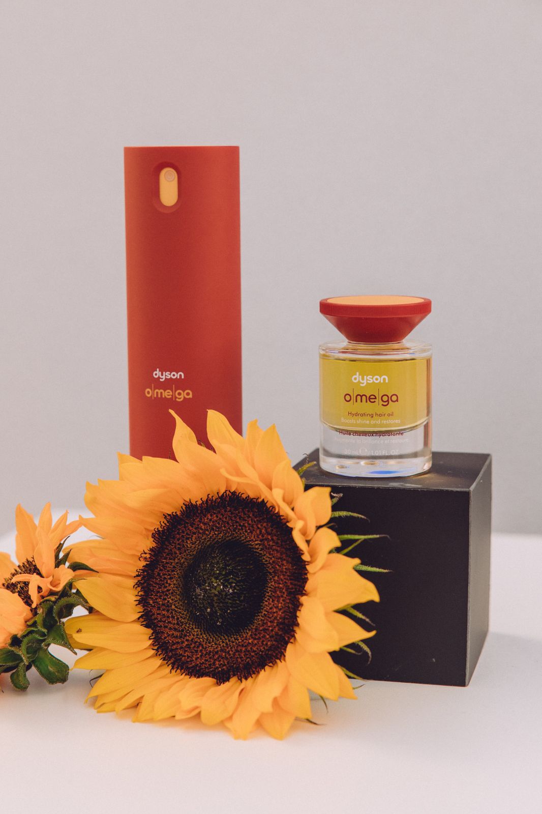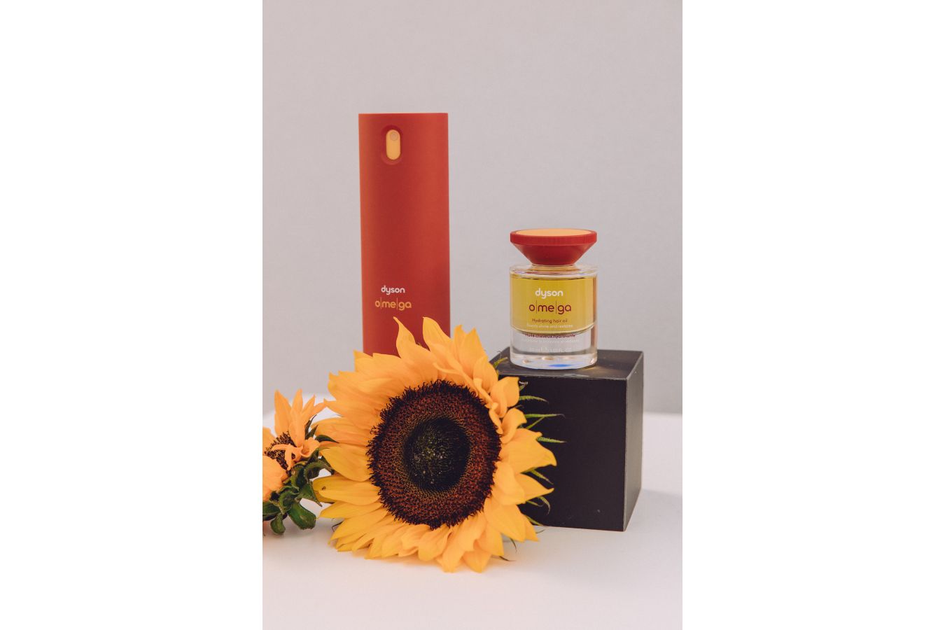 Pozitivní účinky olejů na zdraví vlasů využívá i nejnovější řada vlasových produktů Dyson Omega™ s obsahem směsi Dyson Oli7™. Jeho hlavní složkou je slunečnicový olej ze společnosti Dyson Farming bohatý na esenciální mastné kyseliny, zejména omega 6 a 9, které pomáhají hluboce hydratovat vlasy, vyhlazovat kutikulu a redukovat krepatění. Díky své lehké molekulární struktuře se olej rychle vstřebává do vlasového vlákna, aniž by se hromadil. Směs obsahuje také šest dalších rostlinných olejů, které byly pečlivě vybrány pro své specifické vlastnosti: olivový olej, olej z abysynek (Abyssinian), kukuřičný olej, avokádový olej, sezamový olej a makadamový olej. „Řeší problém suchých, zacuchaných a kudrnatých vlasů pomocí přírodních ingrediencí, které sami pěstujeme,“ prozradil Sir James Dyson, zakladatel společností Dyson a Dyson Farming.