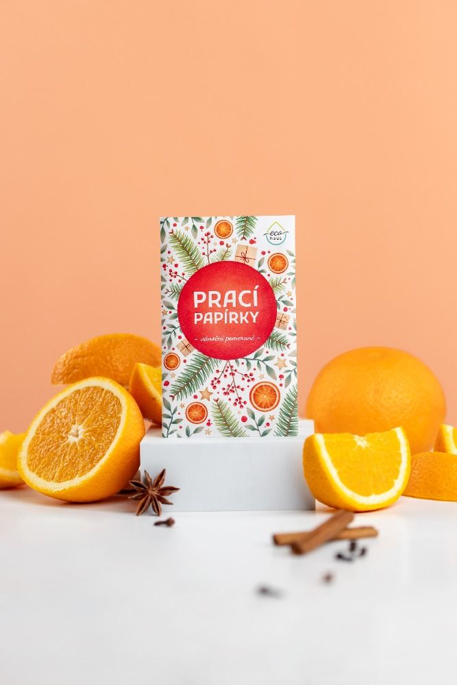 - Prací papírky EcoHaus (60 ks)s vůní vánočního pomeranče – jemná citrusová vůně, která navodí pocit tepla a pohody.