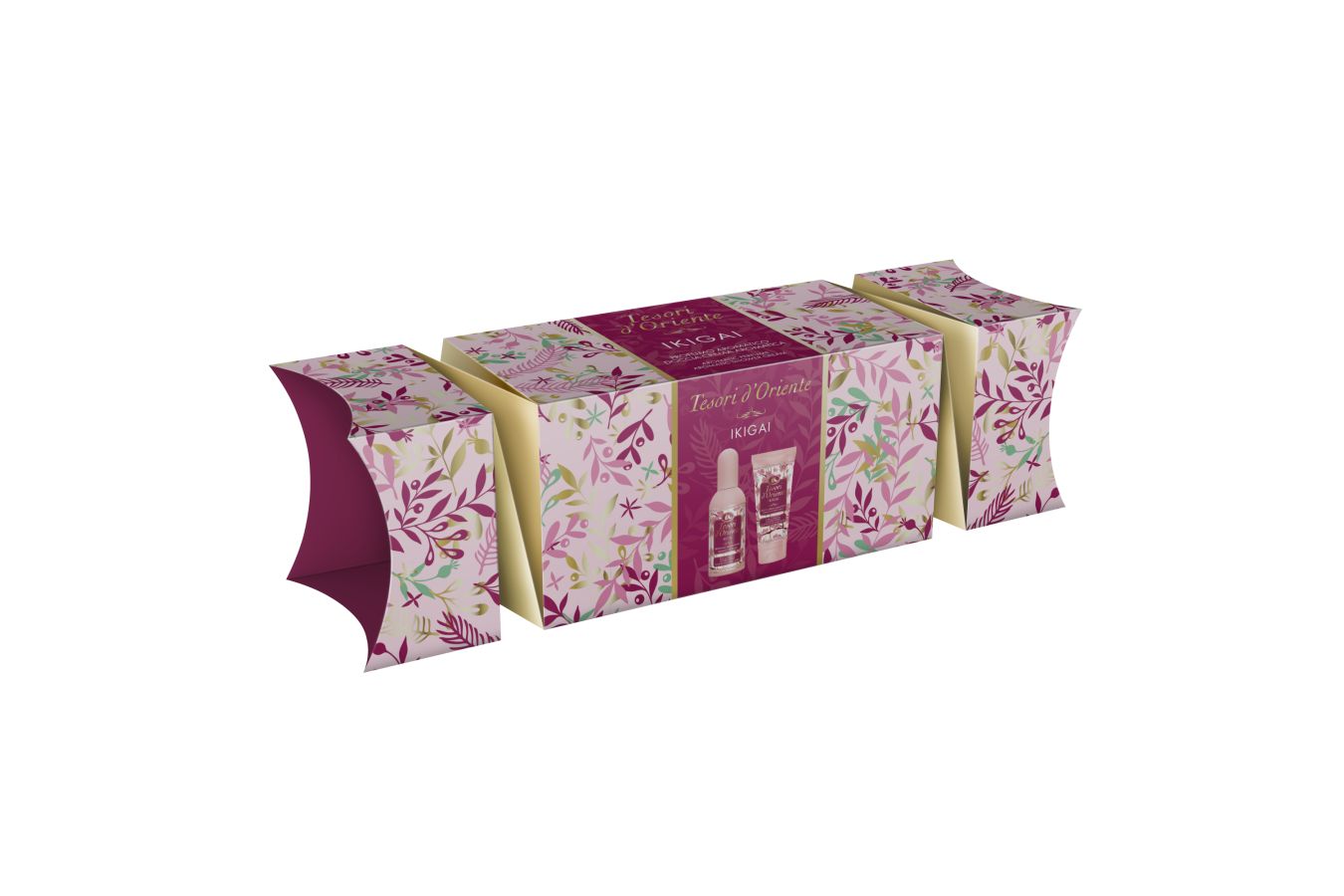 Řada Tesori d'Oriente Ikigai je inspirovaná japonskou filozofií života v rovnováze, klidu a kráse přítomného okamžiku. Jemná květinová vůně je jako dotek jarního rána pod rozkvetlou sakurou. Vánoční balení obsahuje parfémovou vodu a sprchový gel.