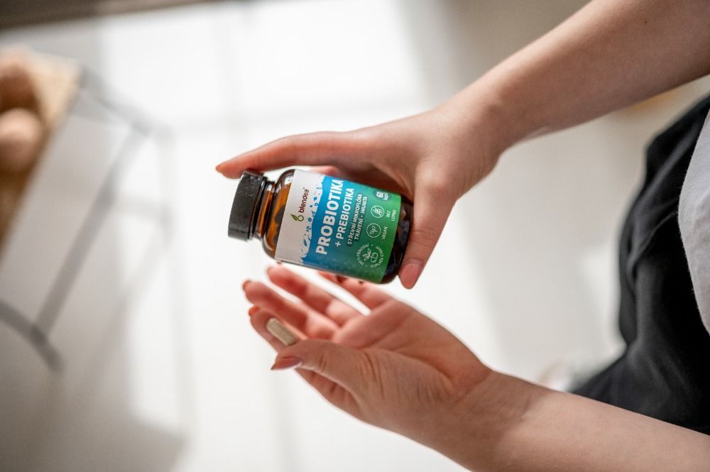 Při užívání antibiotik nezapomeňte na střevní mikrobiom. Blendea Probiotika + Prebiotika kombinují živé kultury a vlákninu pro obnovu střevní mikroflóry během i po nemoci.