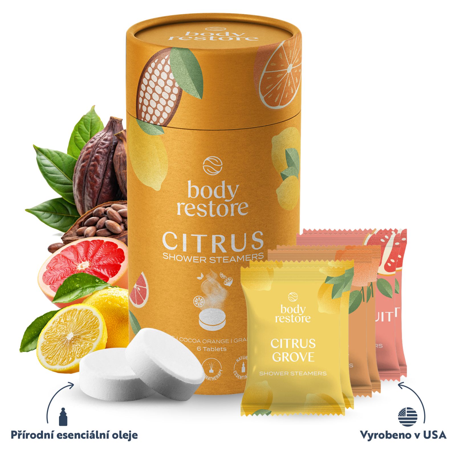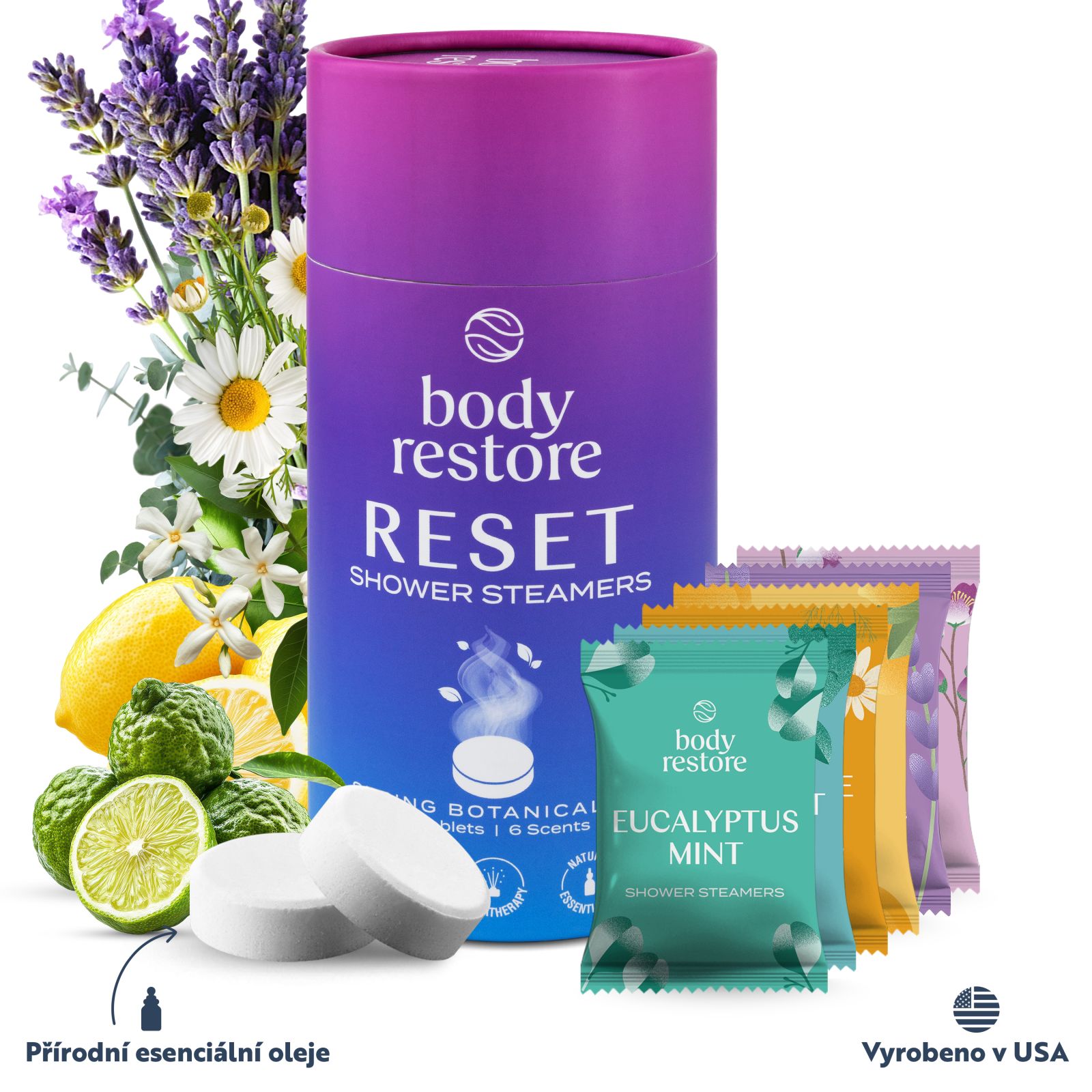 Značka Body Restore pochází z USA, kde se stala nejprodávanější značkou aromaterapeutických tablet do sprchy. Tablety jsou vyrobeny ve Spojených státech, obsahují přírodní esenciální oleje, jsou veganské, cruelty free a bez parabenů. Použití je velmi jednoduché. Stačí položit jednu tabletu Body Restore na podlahu sprchy mimo přímý proud vody. Teplá voda ji začne pomalu rozpouštět a aktivuje směs přírodních esenciálních olejů, které se uvolňují do prostoru. Sprchový kout se během okamžiku naplní vůní, která povzbudí tělo, zklidní mysl a probudí vaše smysly. Každá tableta se beze zbytku rozpustí, nezanechává zbytky ani mastný film a neucpává odpad, takže po sprše zůstává vše čisté, jen příjemná vůně a pocit svěžesti.