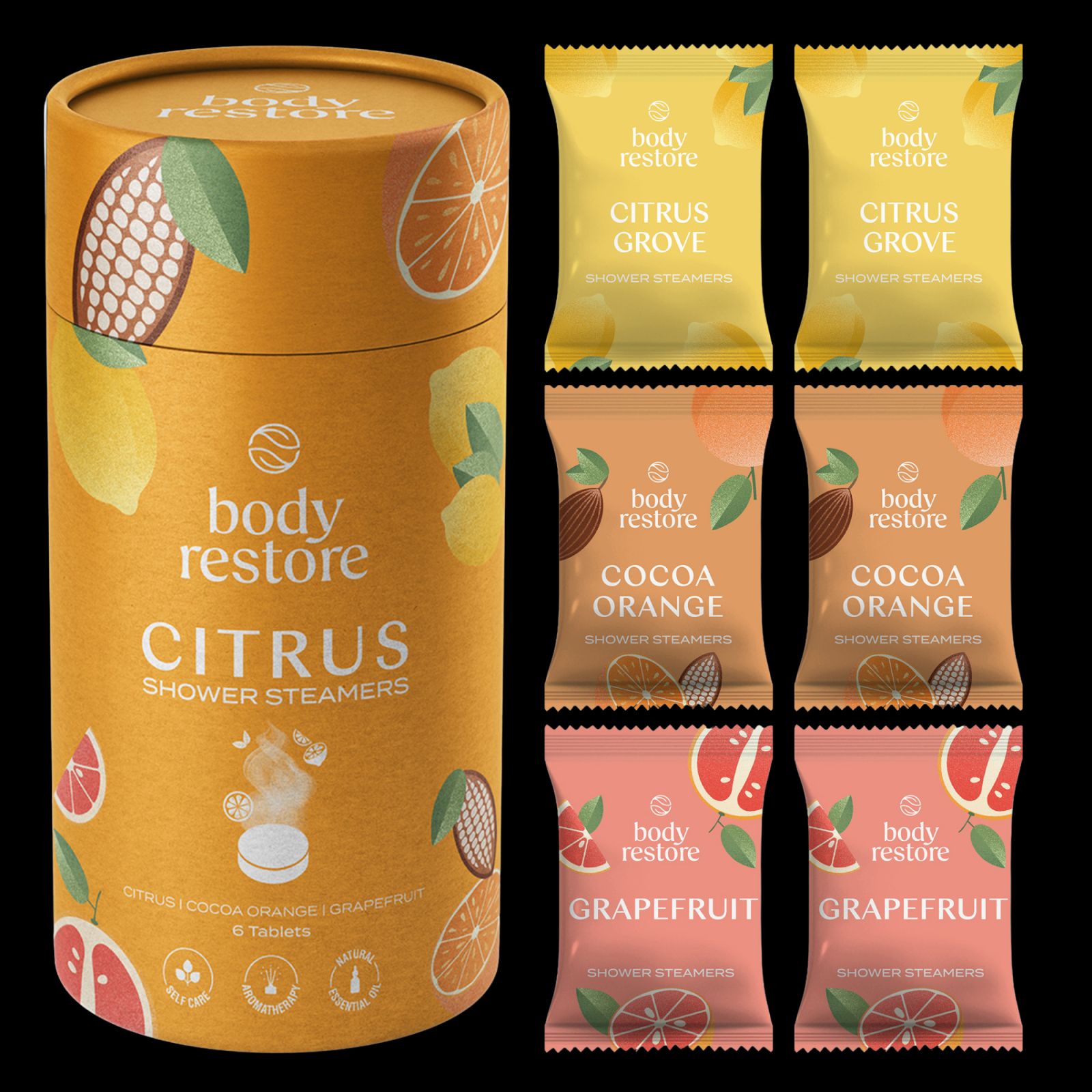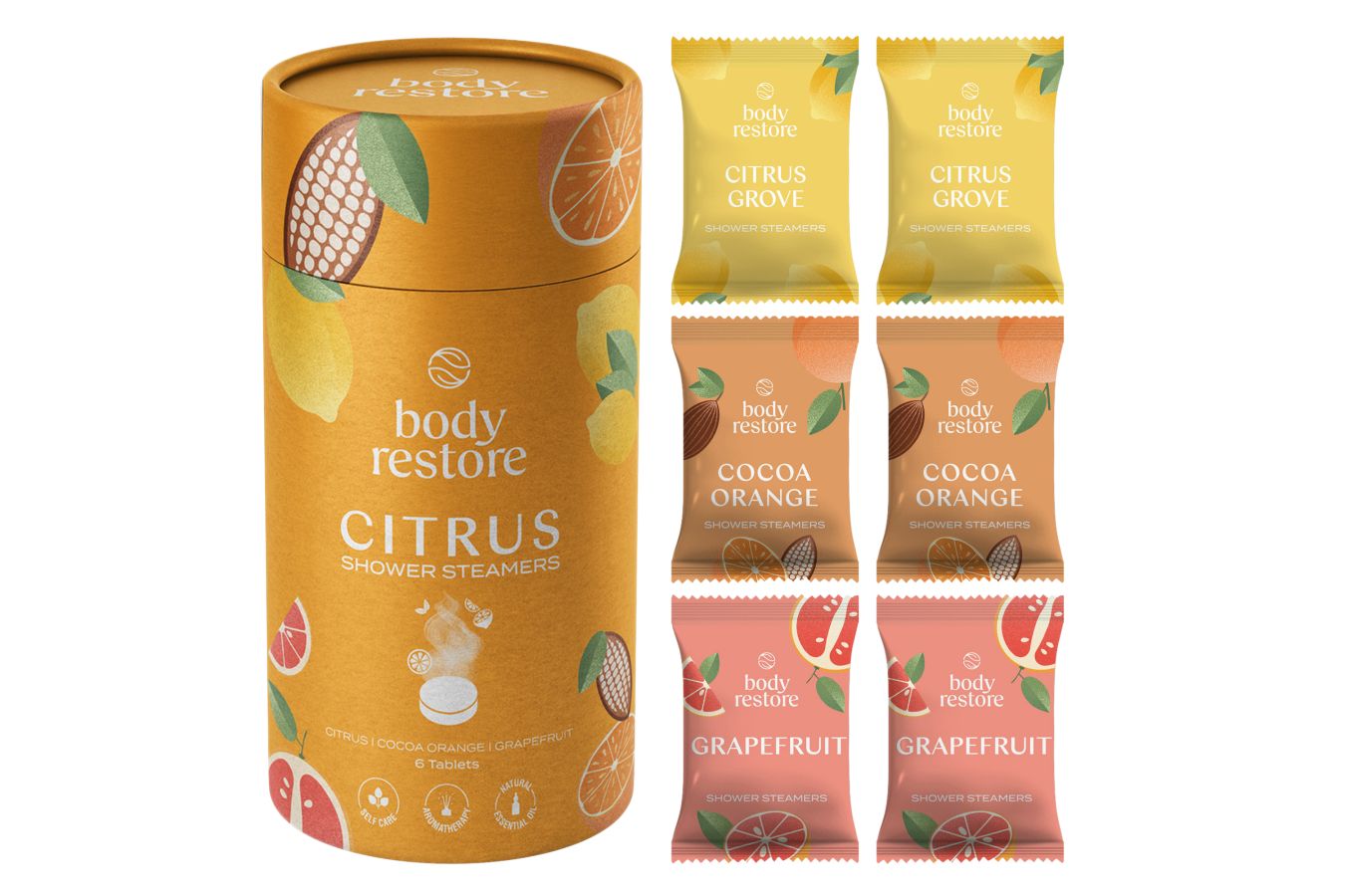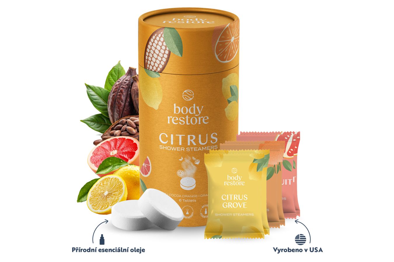 Tablety do sprchy Body Restore Citrus promění každodenní sprchovou rutinu v jedinečný aromaterapeutický zážitek, který povzbudí tělo i smysly a zároveň uvolní mysl. Stačí vložit jednu tabletu Body Restore na podlahu sprchy mimo přímý proud vody a přírodní esenciální oleje vás obklopí intenzivní vůní citrusového háje, grapefruitu nebo kakaa a pomeranče. Je to ideální dárek nebo speciální odměnou pro vás samotné. Balení Body Restore (6 tablet) citrusových vůní zakoupíte na Notino.cz za 289 Kč.