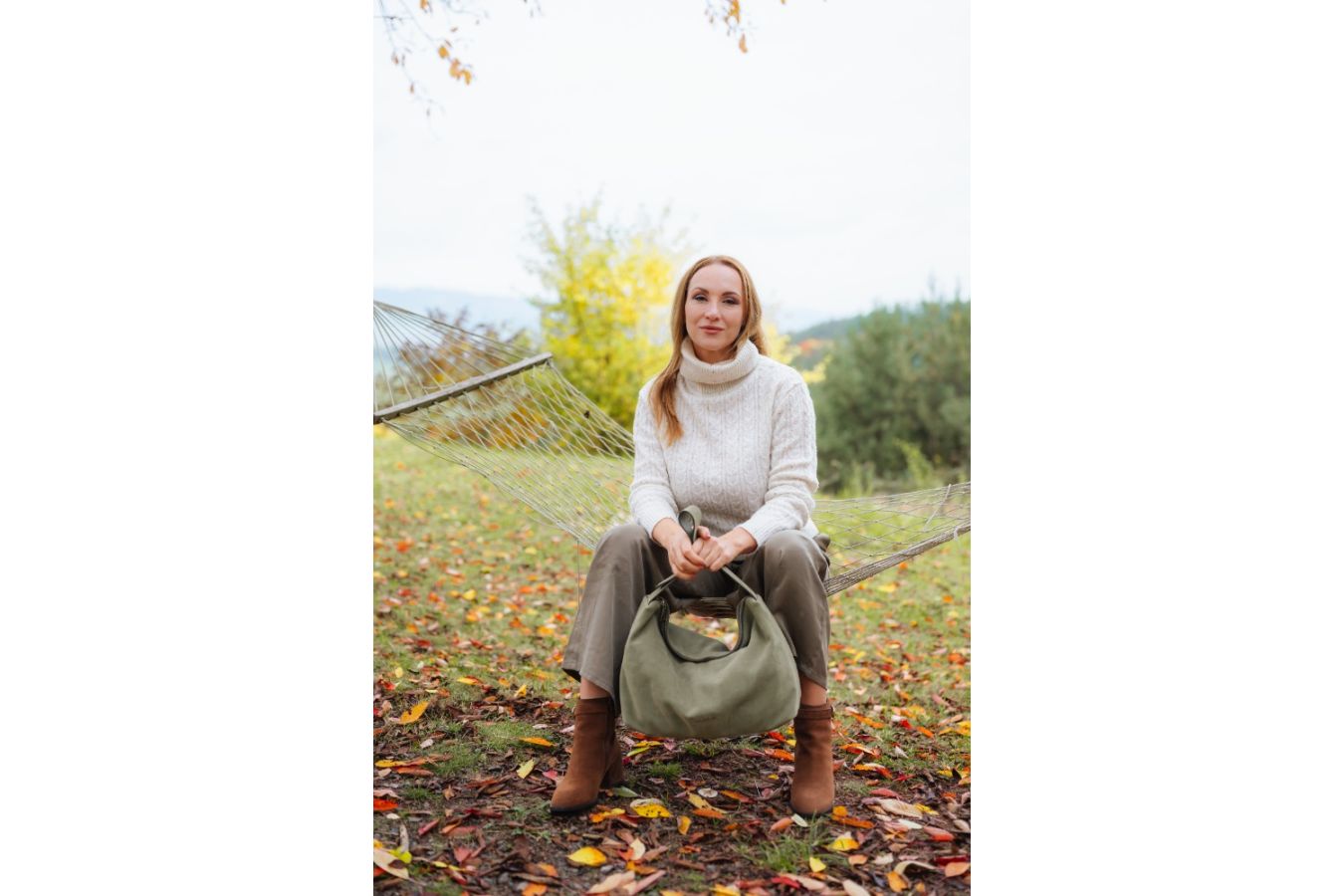 Dostupná ve dvou velikostech, vyrobená z jemné italské velurové kůže v trendy odstínech. Menší verze s dlouhým popruhem nabízí variabilitu – lze ji nosit na rameni i jako crossbody. Větší model je ideální pro milovnice casual stylu, které ocení neformální eleganci a dostatek prostoru pro každodenní nezbytnosti. Helen je minimalistická, nadčasová a praktická – spojení krásy a funkčnosti v jednom.