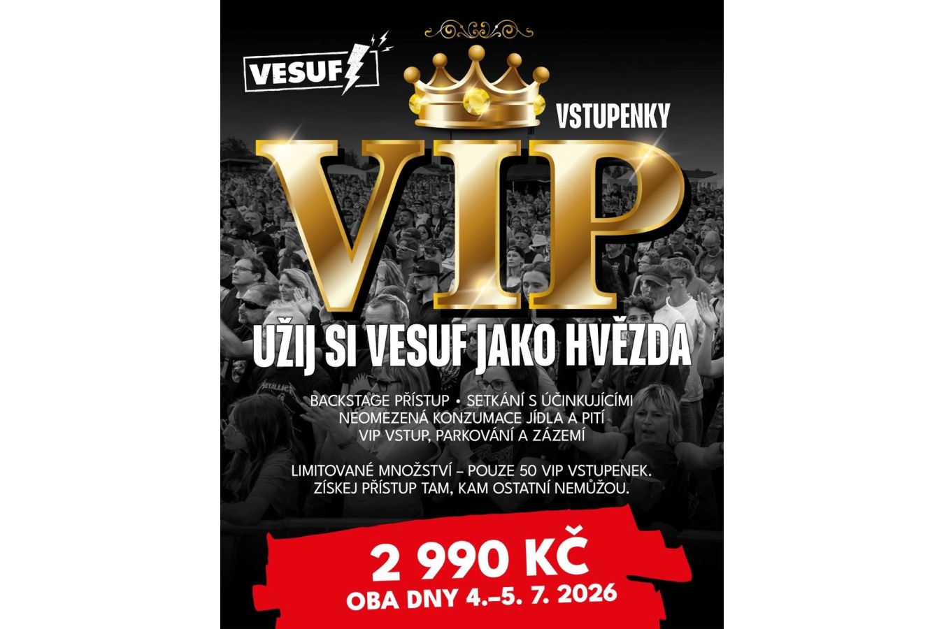 Hledáte dárek, který nabídne nabitý den plný zábavy v přátelské rodinné atmosféře? Darujte vstupenky na multižánrový hudební festival VESUF 2026, který se koná 4.- 5. července 2026! Těšte se na mimořádnou sestavu česko-slovenské kvalitní muziky, kde zazáří již oznámené hvězdy jako Lucie, Kamil Střihavka, Marpo, Martina Pártlová, Walda Gang a spousta dalších. VESUF 2026 se koná v jedinečné přírodní lokalitě na Pastýřské louce u Velenova, jen 40 minut od Brna. Letos poprvé na 2 stagích. Vstupenky jsou k dispozici v klasické variantě pro všechny fanoušky skvělé hudby i v exkluzivní VIP verzi, která nabídne komfort navíc a jedinečný zážitek z festivalu. Festival se pyšní pestrým line-upem, velkým výběrem z cca 25 malých regionálních pivovarů a programem pro celou rodinu.