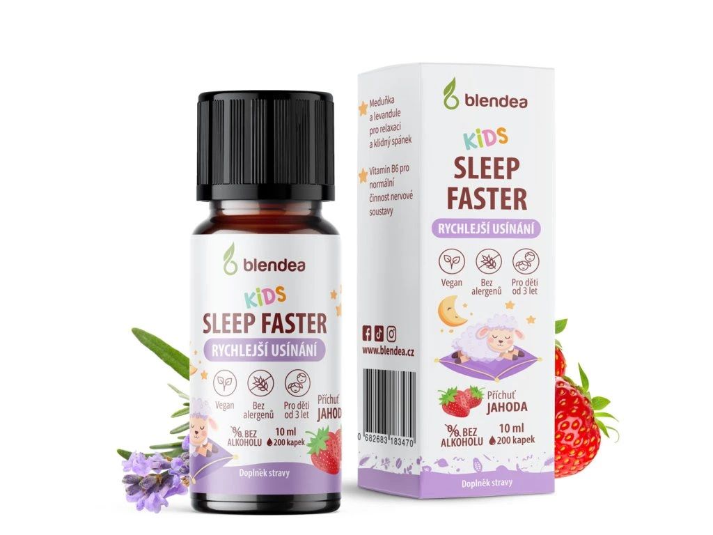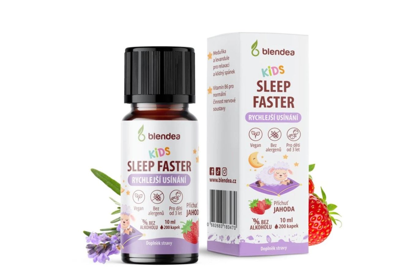 Pro děti, které pomaleji usínají, anebo bývají během večera neklidné, jsou jako stvořené nové kapky Blendea Kids Sleep Faster. Tyto jemně formulované kapky s přírodními složkami (kombinace hořčíku, meduňky, levandule a aminokyseliny L-tryptofanu) vaše ratolesti přirozeně zklidní před spaním, aby se jim v postýlce podařilo rychleji usnout. Složení kapek je přizpůsobené citlivému dětskému organismu a zaměřené na podporu relaxace dětí. Přírodní extrakty jemnou cestou zkrotí jejich večerní neklid a navodí příjemnější přechod mezi aktivním dnem a blížícím se spánkem.