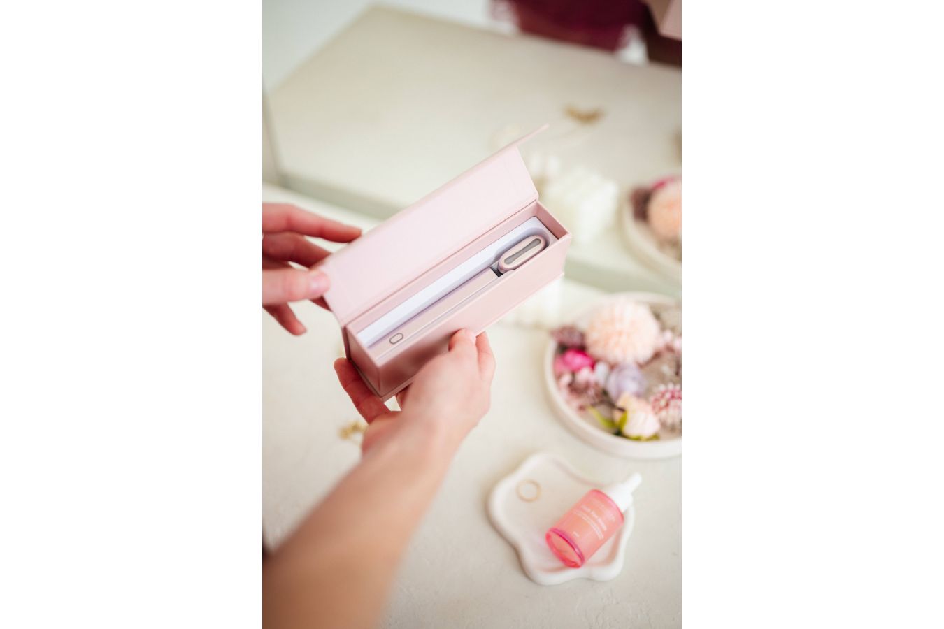 FixEye+ to je chytrá technologie, které se postará o nejjemnější partie obličeje — oblast očí a rtů. Kombinuje červené a modré LED světlo, EMS mikrostimulaci, vibrační masáž a terapeutické teplo. Pleť je po ošetření pevnější, drobné vrásky vyhlazené a otoky i tmavé kruhy pod očima viditelně redukované. Výsledkem je svěží, prozářený a mladistvý vzhled. Pro nejlepší efekt kombinujte se sérem Flash Eye od SookSkincare, jehož vzorek dostanete k přístroji jako dárek.