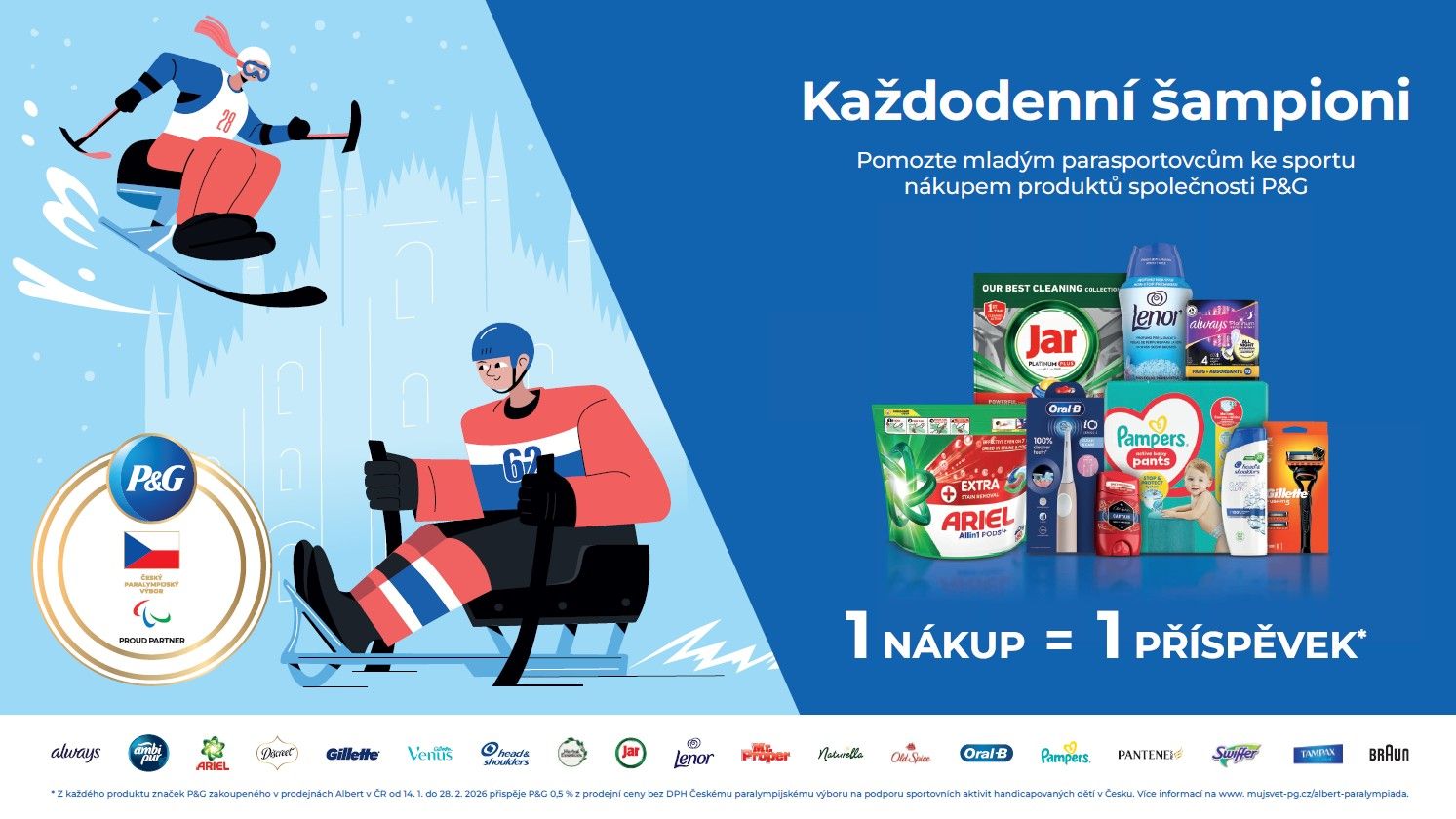 „S Českým paralympijským výborem spolupracujeme opakovaně, protože chceme podpořit malé handicapované šampiony. Věříme, že se díky zákazníkům v prodejnách Albert podaří vybrat co nejvyšší částku – a třeba mezi dětmi bude i budoucí paralympionik,“ dodává Elena Lifanteva, marketingová manažerka Procter & Gamble.