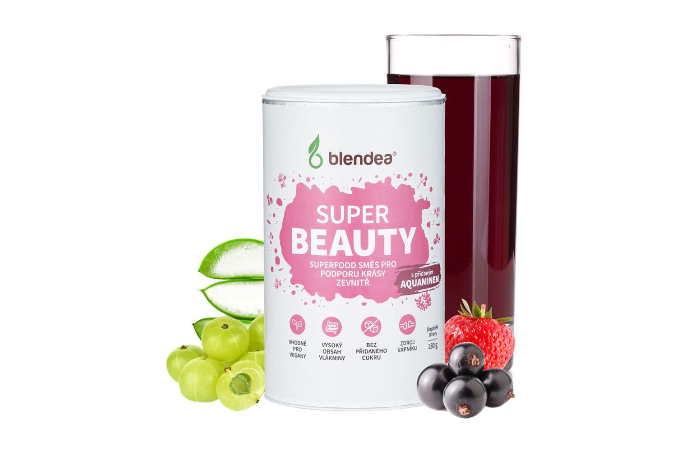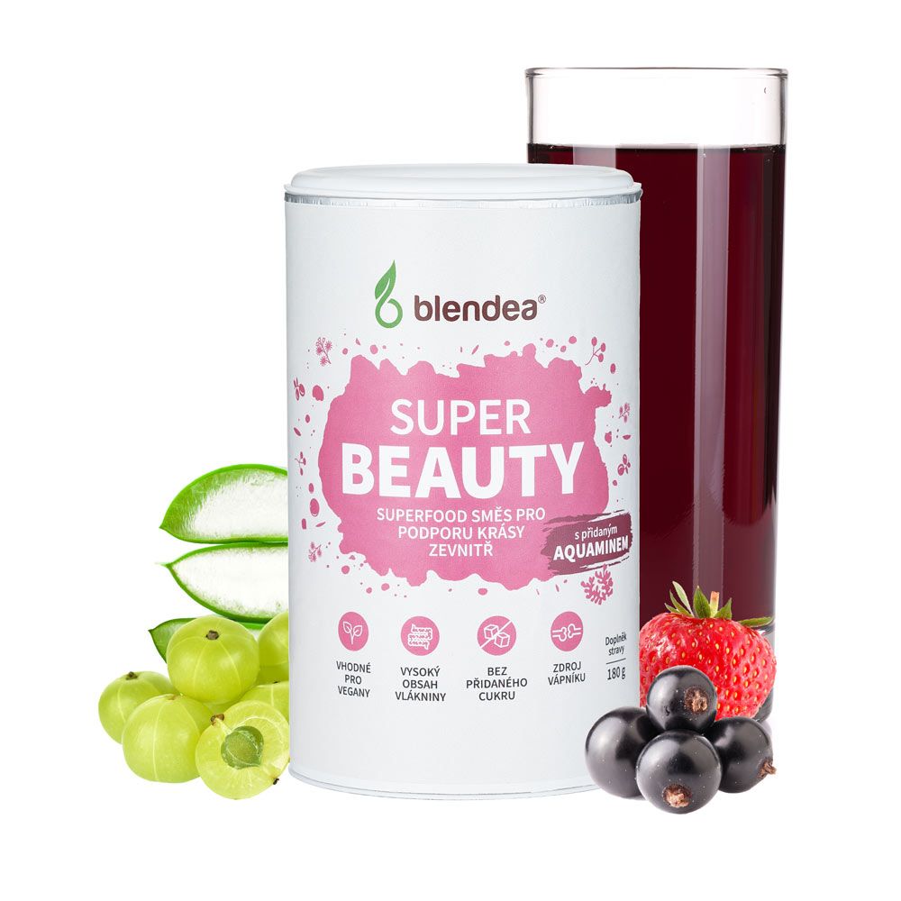 Podpořte svou krásu zevnitř pomocí sypké směsi Blendea SUPERBEAUTY ve svěží „berry“ příchuti. Ze směsi hravě vytvoříte osvěžující drink nebo ji můžete přidat do ovocných a zeleninových šťáv, koktejlů či jiných nápojů. Stejně tak se ji ovšem nebojte přimíchat do snídaňové kaše, jogurtu nebo chia pudingu. A jaké blahodárné složky tenhle elixír krásy obsahuje? Především vyniká vysokým obsahem vlákniny, bohatou porcí vitaminu C a solidní dávkou vápníku. Prodává www.blendea.cz, 180 g (30 dávek) za 393 Kč.