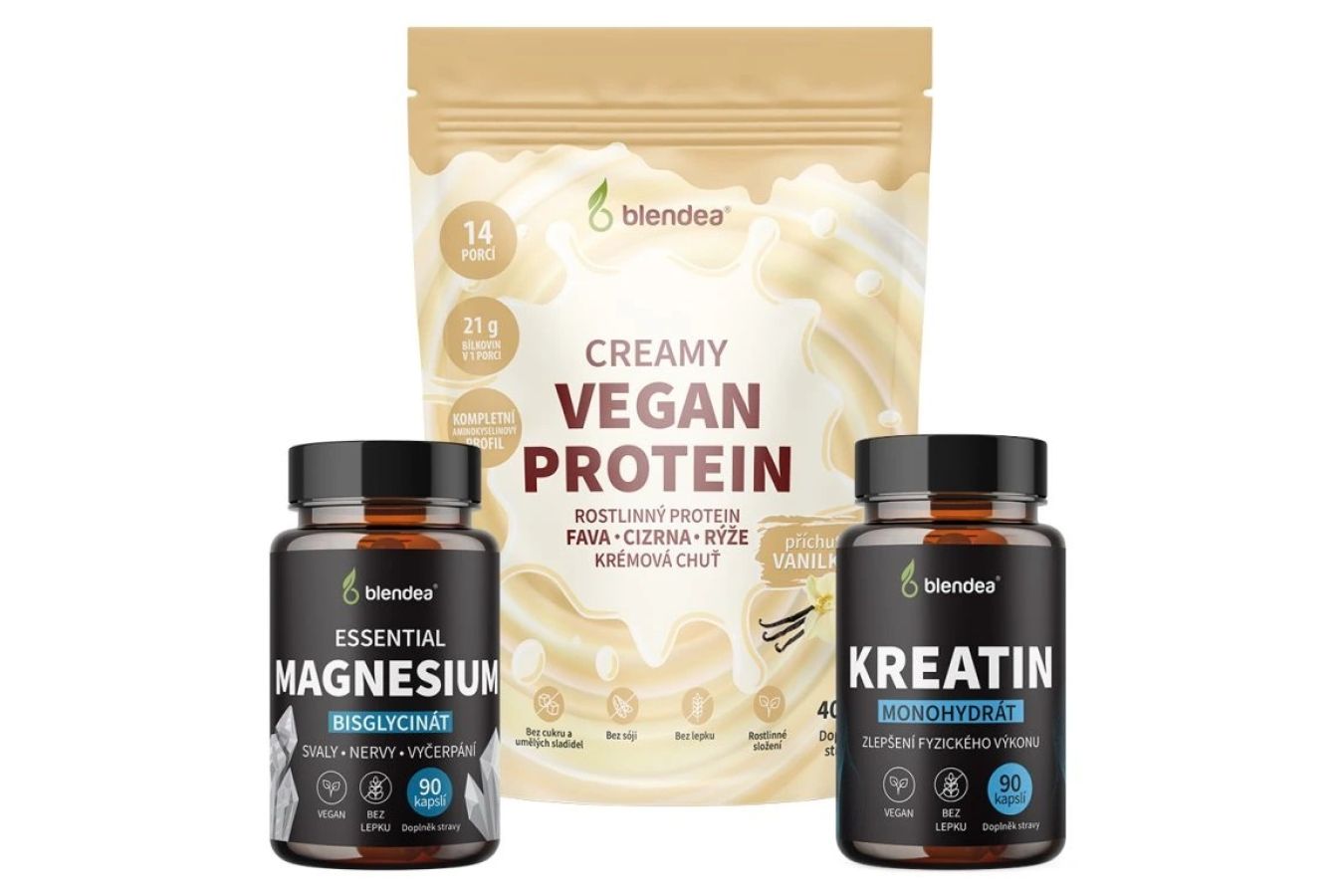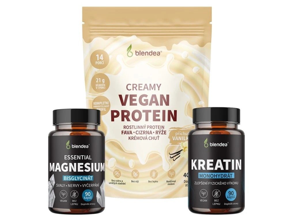 Je vaše drahá polovička ve fitku jako doma? Pak ji potěší Blendea Vegan Protein s lahodnou vanilkou příchutí. Z rostlinného proteinového prášku si vaše láska snadno umíchá hedvábně jemný i tak akorát sladký drink plný potřebných bílkovin – v každé porci rovných 21 gramů. Nebo chcete svého miláčka hýčkat ještě víc? V tom případě ho obdarujte rovnou celým Blendea Fitness balíčkem, kde na něj kromě proteinu čeká i Magnesium Bisglycinát a Kreatin monohydrát. Tohle nabušené trio tvoří základní palivo pro růst svalů, jejich regeneraci a k tomu zlepšuje fyzický výkon.