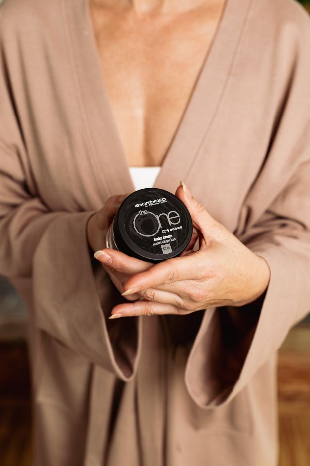 Jedním z největších bestsellerů Asombroso je ikonický krém The One Snake Cream. Je přímo dokonalý pro unavenou a namáhanou pleť, kterou krásně vzpruží, zregeneruje, vyhladí a perfektně hydratuje. Klíčovou složkou je syntetický hadí jed Syn-ake, který má podobné účinky jako botox, uvolňuje obličejové svaly, redukuje jemné vrásky a zpevňuje kontury. Pleť ošetří i oblíbená silně hydratační kyselina hyaluronová a LACTIL®, který výrazně zvyšuje hladinu vlhkosti v pleti, olivový olej, glycerin, lecitin a antioxidant vitamín E. Krém navíc dostanete v luxusním saténovém pytlíčku a je ukrytý v bezkontaktním airless kelímku „touch & slide“ s unikátní patentovanou technologií dávkování.