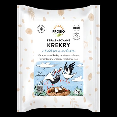 Fermentované krekry z bio červené pšenice jsou obohacené lněnými semínky a mákem. Červená pšenice obsahuje antioxidanty antokyany, len je zdrojem zdravých tuků a mák vápníku. Díky fermentaci jsou krekry lépe stravitelné a nutričně hodnotnější. Krekry lze jíst samotné, k pomazánkám, salátům či polévkám, servírovat je na večírku, na výletě nebo ve škole. K svačině se hodí přidat zeleninu, sýr nebo tvaroh pro zvýšení podílu bílkovin.