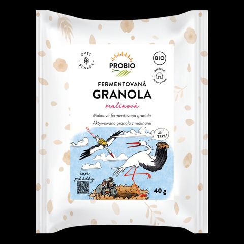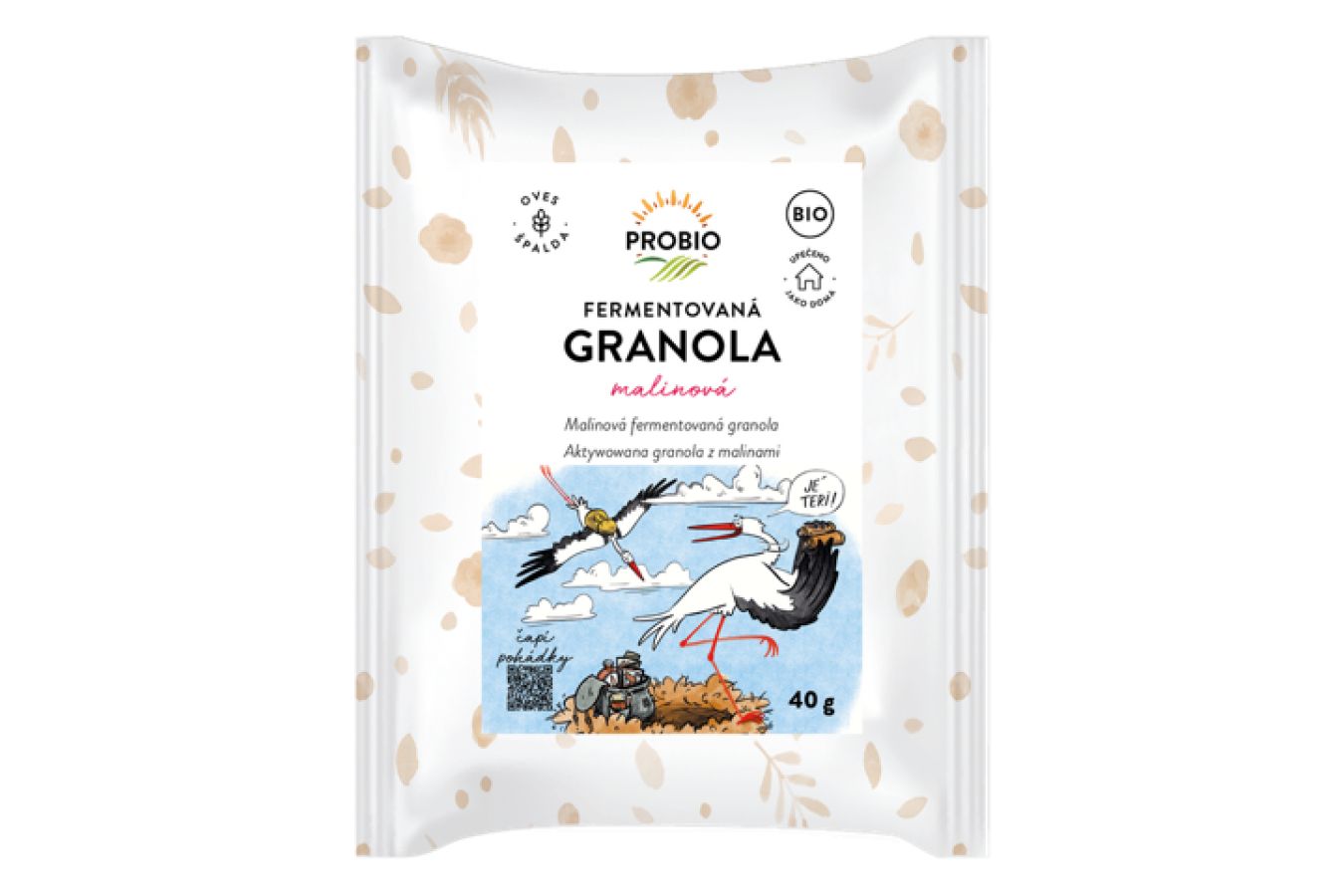 Přední český výrobce bio potravin PROBIO rozšiřuje nabídku o novou řadu fermentovaných svačinek s originálními ilustracemi čápů. Jako první přichází na trh malinová granola a krekry z červené pšenice.