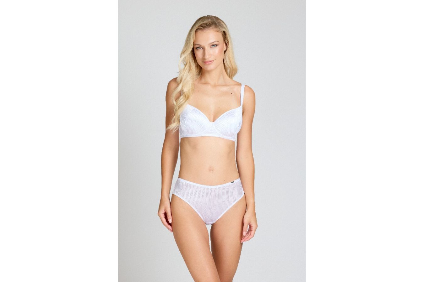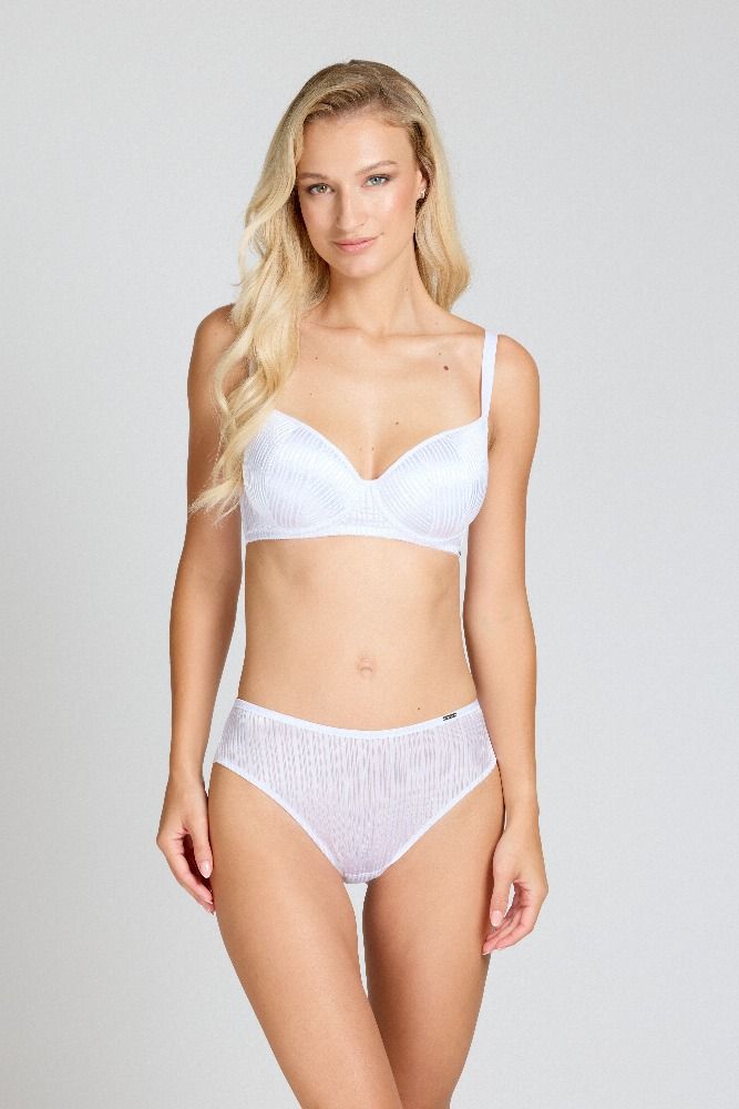 Podtrhněte svou ženskost v bílé podprsence Sexy-Fit. Hladký luxusní úplet na koších se nerýsuje pod oblečením, zatímco balkonový střih je ideální pro malé a střední velikosti a vytváří kulatý, svůdný dekolt.