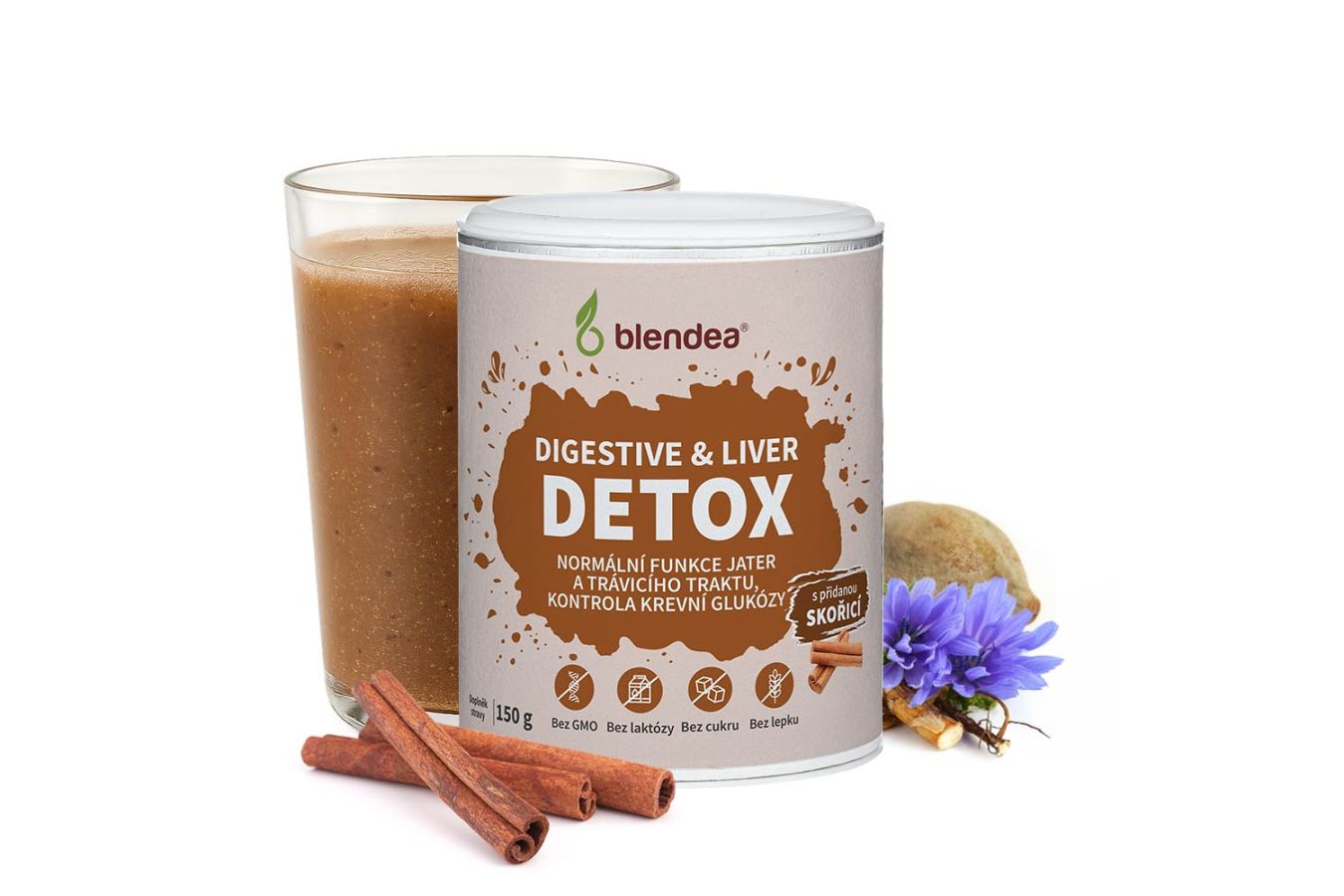 Blendea Digestive & Liver Detox představuje funkční směs určenou k podpoře jater a trávení. Díky obsahu ostropestřce mariánského, psyllia a ajurvédské Triphaly nápoj podporuje detoxikaci, reguluje hladinu krevního cukru a přispívá ke klidnějšímu zažívání. Přírodní skořicová chuť usnadňuje užívání nápoje a navyšuje chuť na něj. Směs stačí rozpustit ve vodě a vypít.