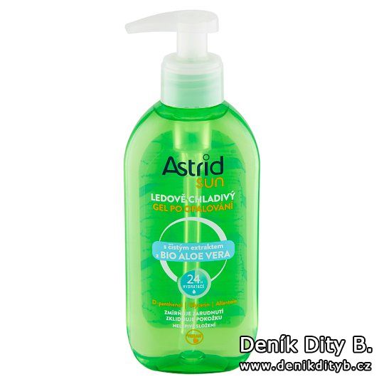 Každý rok děláte vše proto, abyste se a sluníčku nespálili, ale pokaždé to odnesou záda, nohy nebo minimálně nos? Není-li dostatečná prevence, přijdou nemilé následky. Pak byste si vždy měli vzpomenout na ASTRID SUN Ledově chladivý gel po opalování obohacený o čistý extrakt z bio aloe vera pomáhá zklidnit podrážděnou pokožku po opalování a zmírňuje pocit pálení a zarudnutí. Poskytuje pocit chladivého osvěžení a hydratuje pokožku až po dobu 24 hodin. Nelepivé složení se rychle vstřebává.
