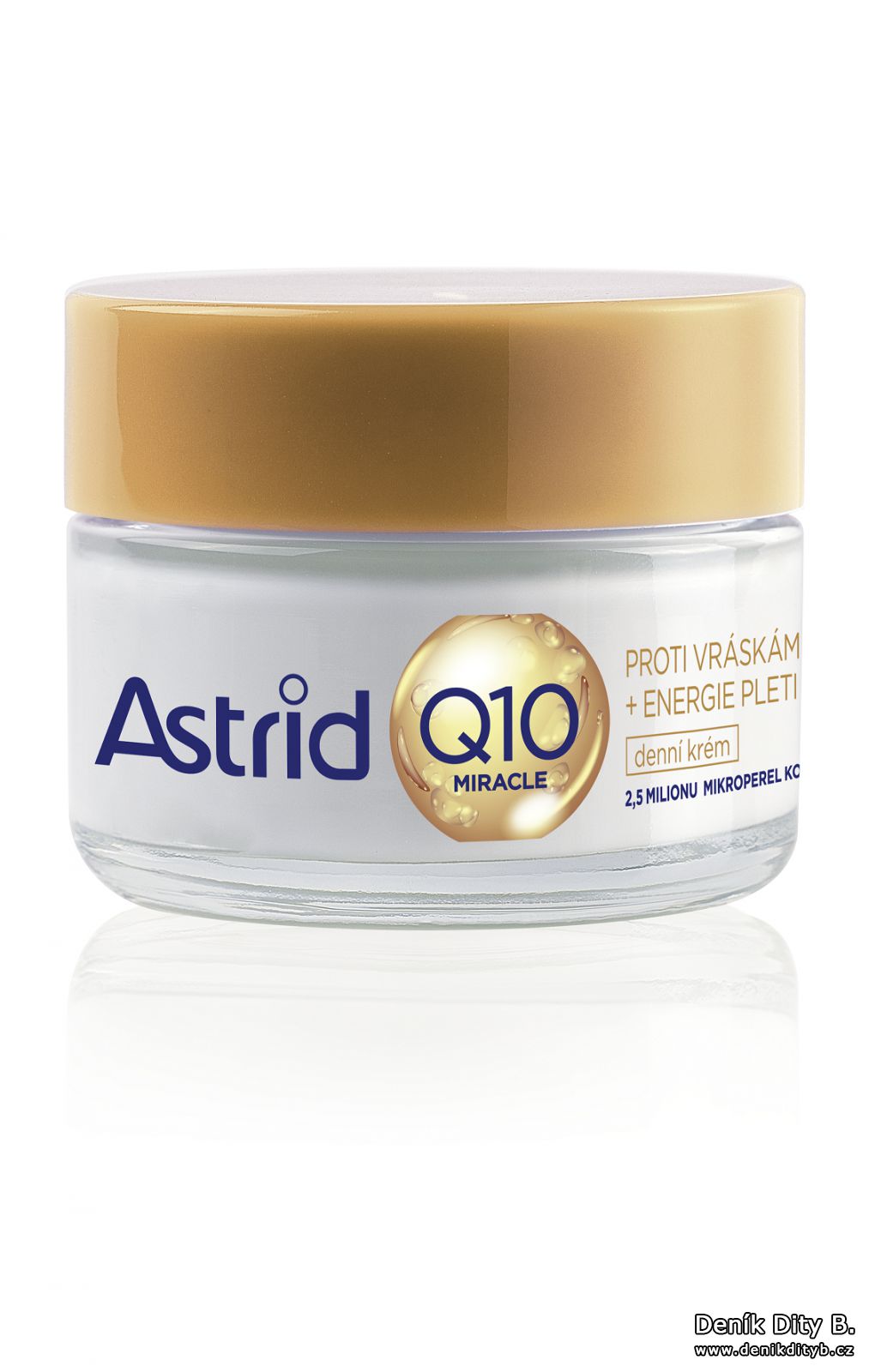 Elixír mládí ještě nikdo nevynalezl, ale díky kosmetickým přípravkům je možné známky stárnutí zpomalit. ASTRID Q10 MIRACLE je denní krém proti vráskám pro energii pleti s 2,5 milionu mikroperel koenzymu Q10 stimuluje produkci kolagenu, pomáhá redukovat jemné vrásky, pomáhá omlazovat pleť a udržuje její mladistvý vzhled.