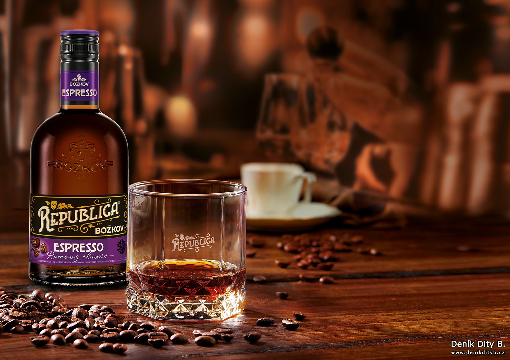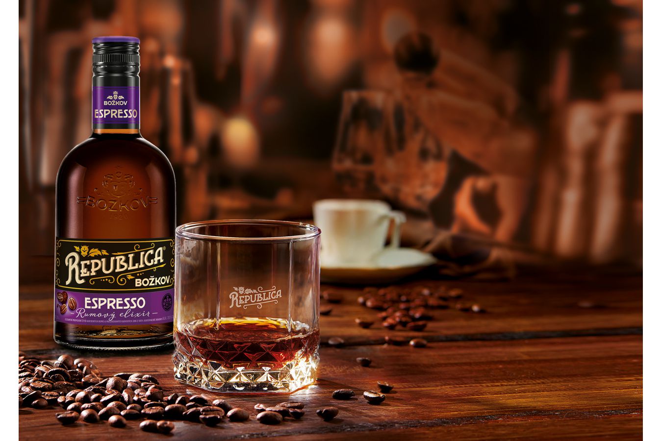 Božkov Republica Espresso, které reflektuje všeobecně rostoucí oblibu kávy, ocení nejen milovníci kávy. Elegantním propojením karibských rumů a kávového extraktu z 100% guatemalské Arabiky vzniká rumový elixír ořechové barvy s vůní a chuťovými tóny čerstvě připravené kávy Espresso. Rumový elixír Božkov Republica Espresso si můžete vychutnat při pokojové teplotě samotný nebo v kombinaci s tonikem a kapkou citronu na ledu, a to nejen ve vašem oblíbeném baru, ale i doma s přáteli.