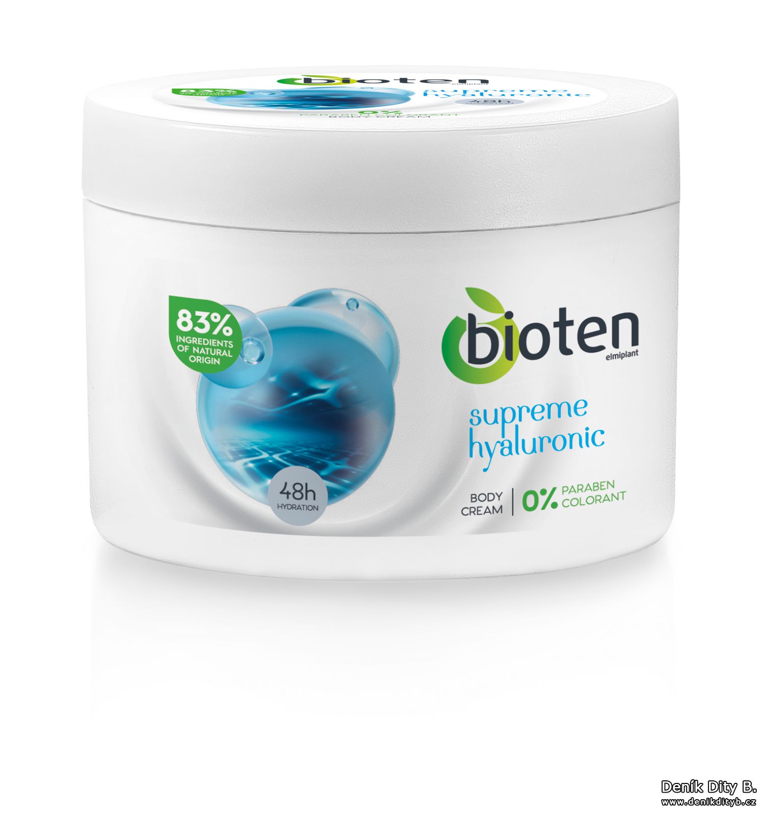 Bohatě vyživující krém bioten hyaluronic supreme obsahuje vysoký podíl různých forem kyseliny hyaluronové pro maximální a dlouhotrvající hydrataci celého těla. Dokáže navázat a udržet až 1000x vyšší množství vody, než je váha jejích vlastních molekul. Nízkomolekulární kyselina hyaluronová pak umožňuje proniknout účinným látkám krému i do hlubokých vrstev pokožky a působit tak přímo na její pružnost a mladistvý vzhled.