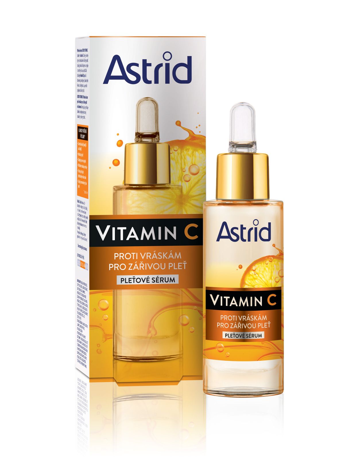 Navraťte svému obličeji přirozený prozářený a zdravý vzhled s pomocí pleťového séra ASTRID VITAMIN C. Obsažený vitamin C je známý svými antioxidačními účinky na pleť, posiluje produkci kolagenu a zvyšuje rovnoměrný tón a jas pleti. S obnovou povrchu pleti pomáhá vitamin B3 bránící ztrátě vlhkosti a dehydrataci. Pleťové sérum proti vráskám pro zářivou pleť omlazuje a vyhlazuje pokožku. Užívejte si projasněné a zpevněné pleti a chraňte ji před předčasným stárnutím.